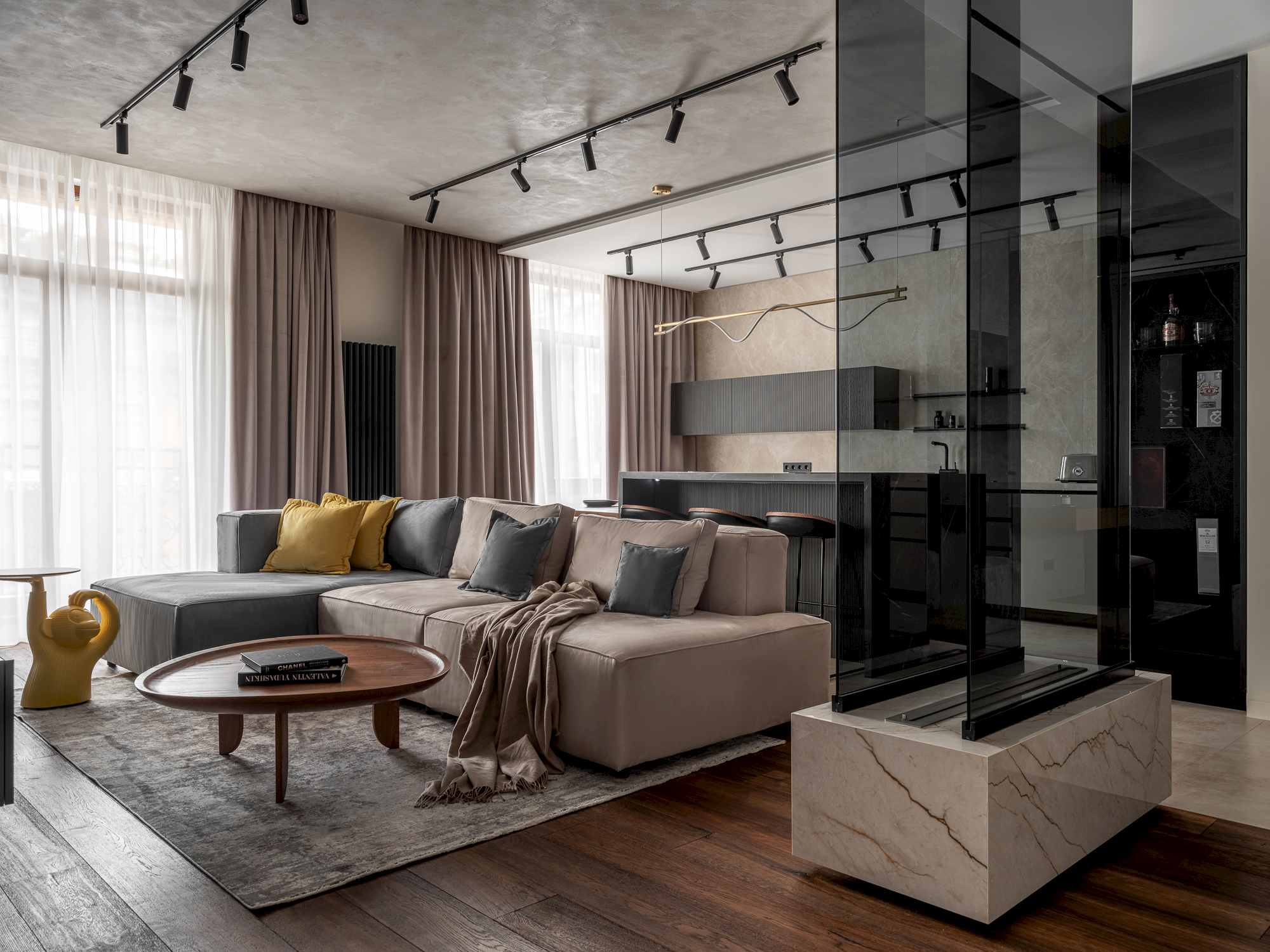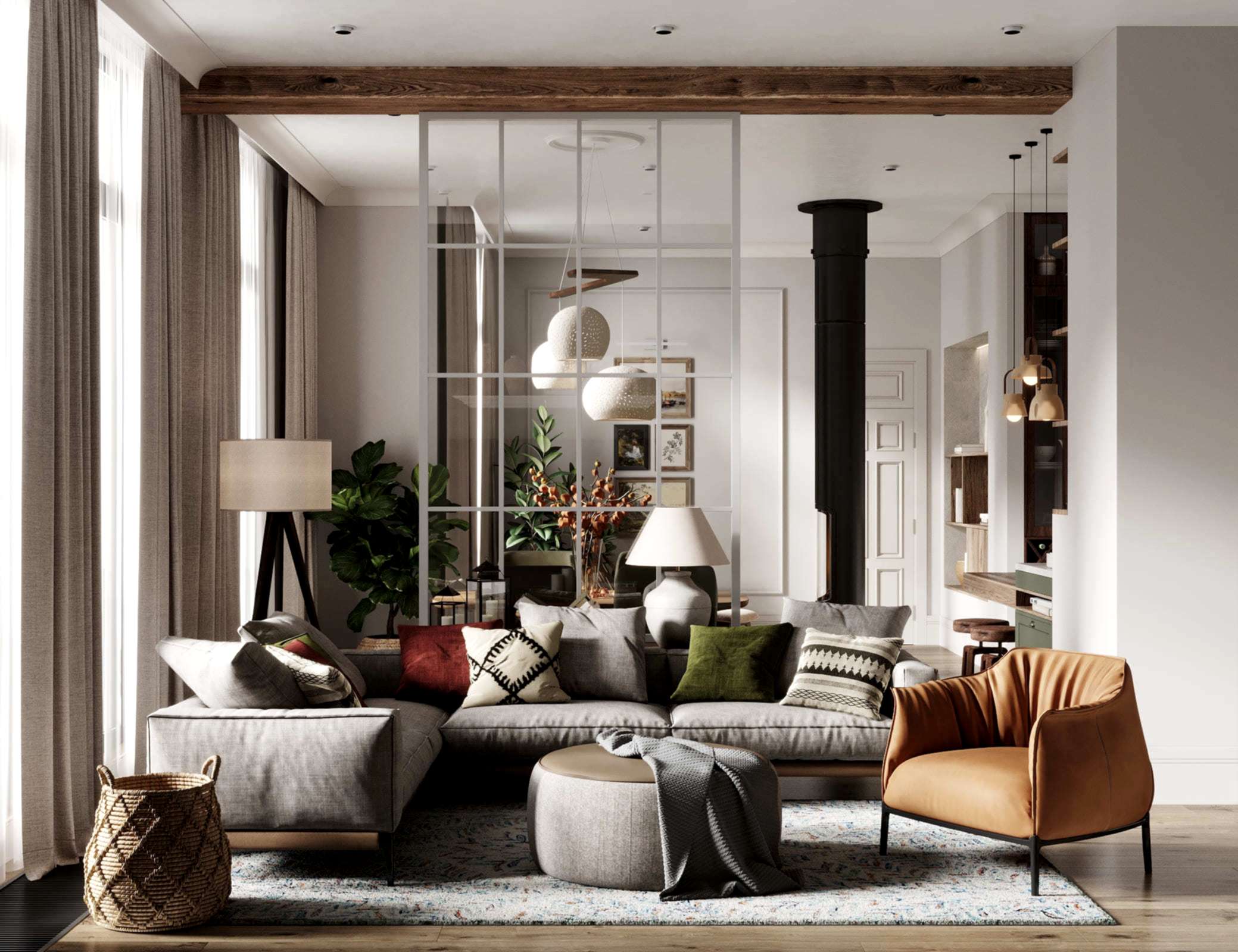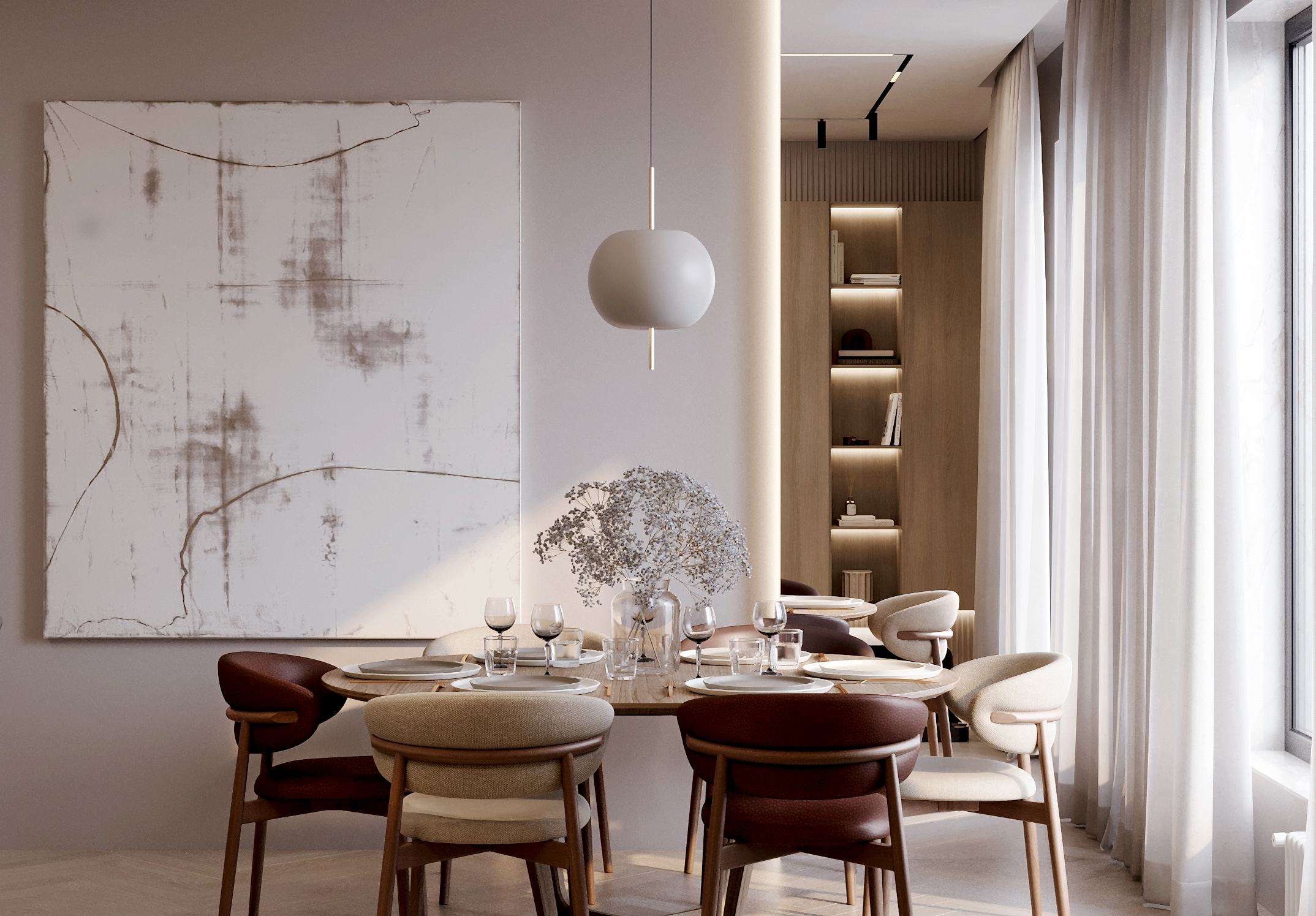 Гармоничное смешение стилей, сочетающих элементы современной американской классики, скандинавского и этнического направлений позволило создать интерьер, наполненный индивидуальностью, неповторимыми чертами и атмосферой самобытности. Интерьер объединяет в себе насыщенные сложные цветовые оттенки, сбалансированные использованием натуральных материалов и текстур, тематические элементы декора и большое количество Pin-Up света - все это придает пространству изысканность и невероятный уют.