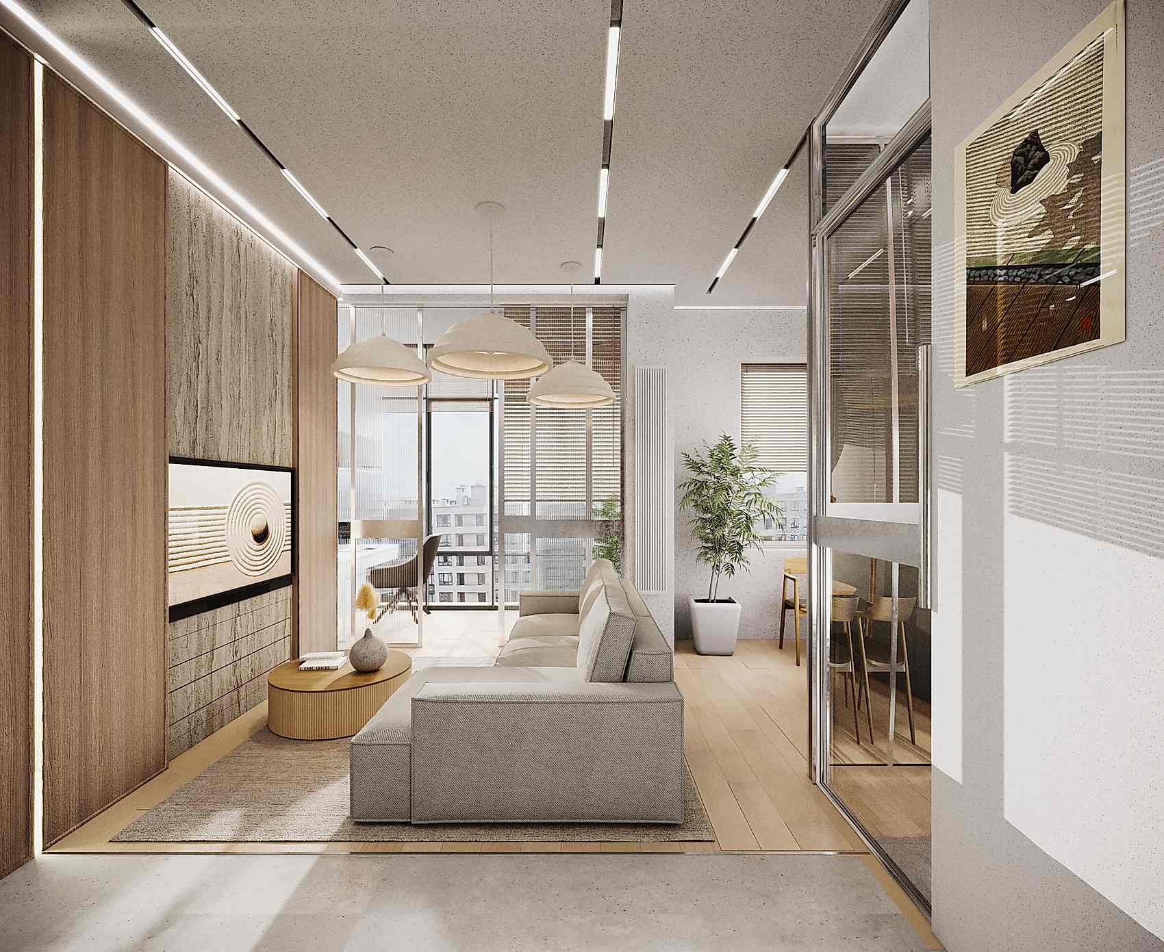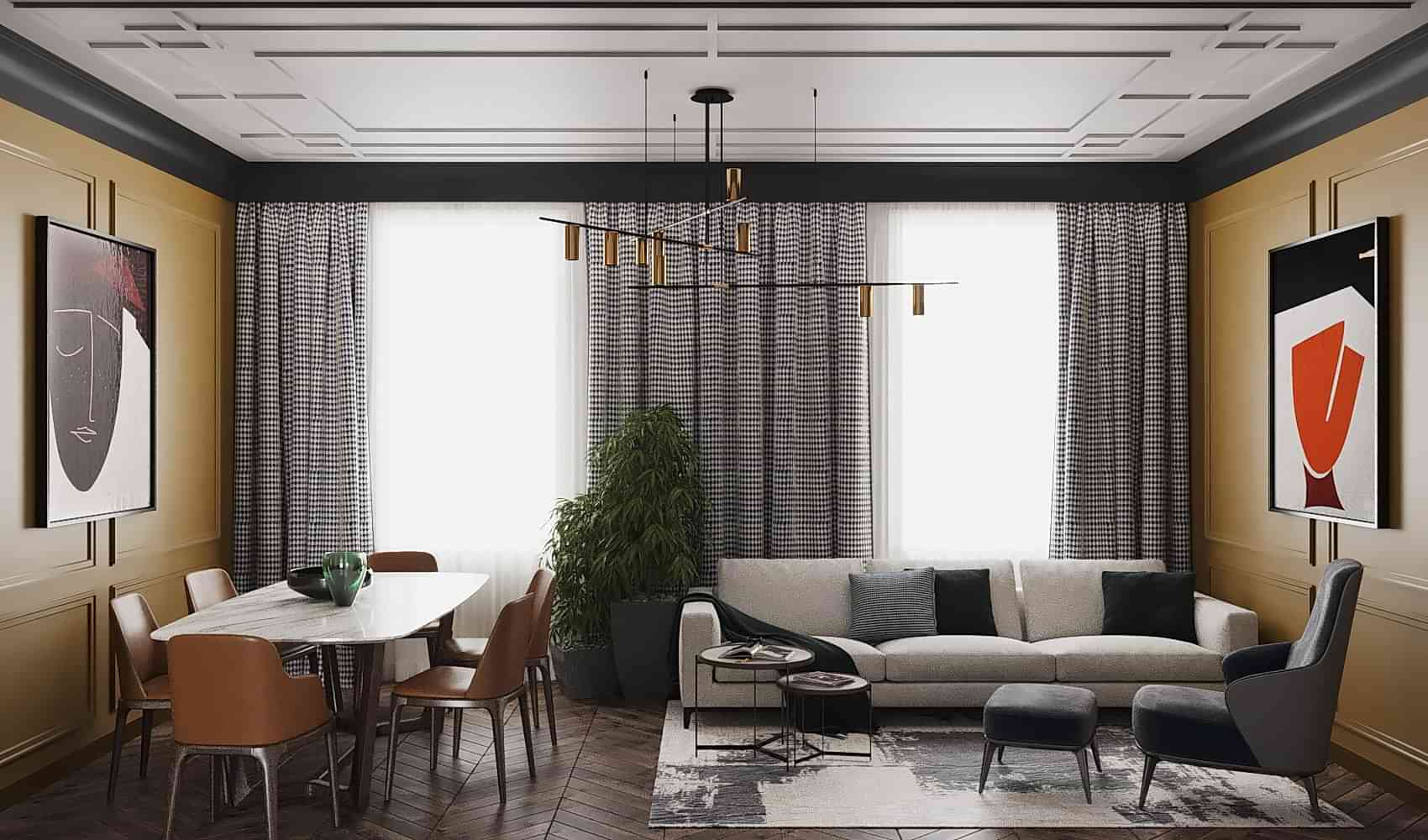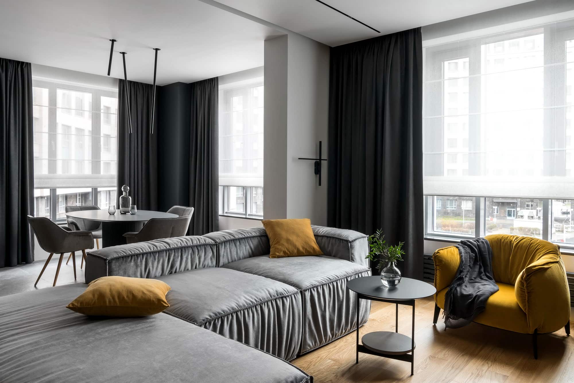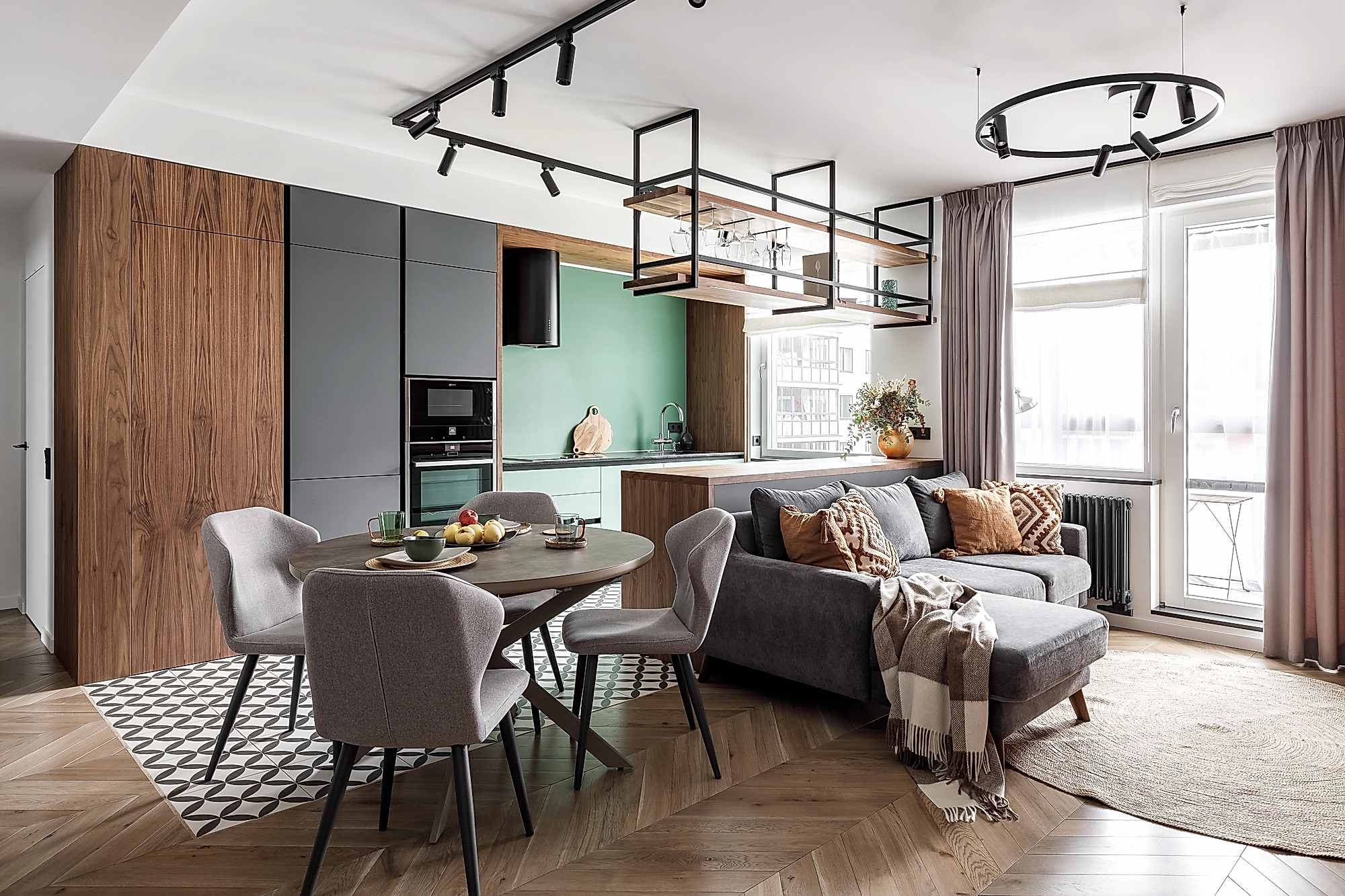 Гармоничное смешение стилей, сочетающих элементы современной американской классики, скандинавского и этнического направлений позволило создать интерьер, наполненный индивидуальностью, неповторимыми чертами и атмосферой самобытности. Интерьер объединяет в себе насыщенные сложные цветовые оттенки, сбалансированные использованием натуральных материалов и текстур, тематические элементы декора и большое количество Pin-Up света - все это придает пространству изысканность и невероятный уют.