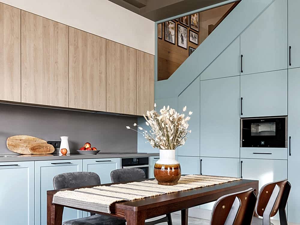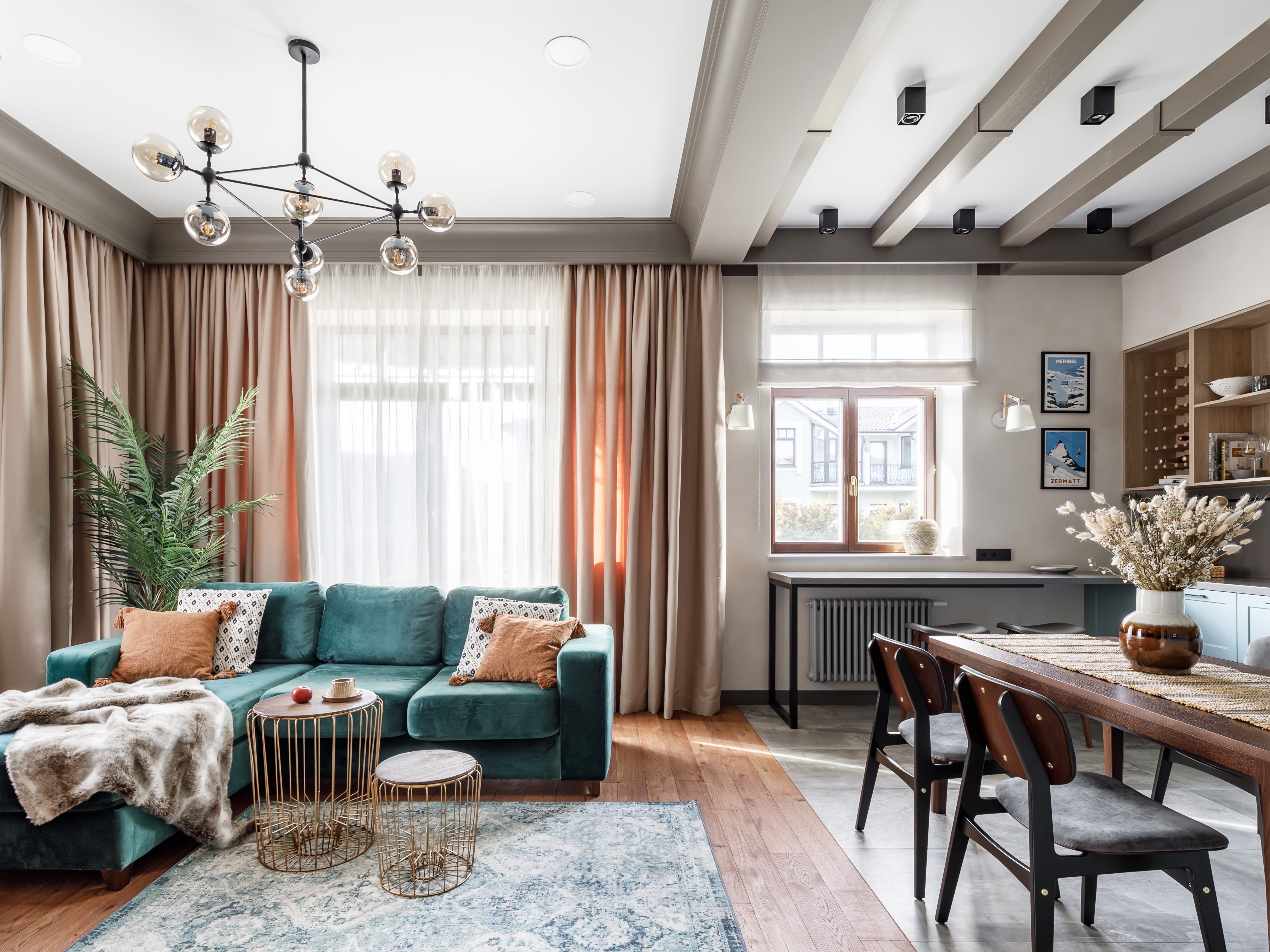 Таунхаус в ЖК Ollila расположен в Pin-Up районе города, в окружении зелени и свежего воздуха, поэтому создание уютного загородного дома стало основной задачей при проектировании интерьера.