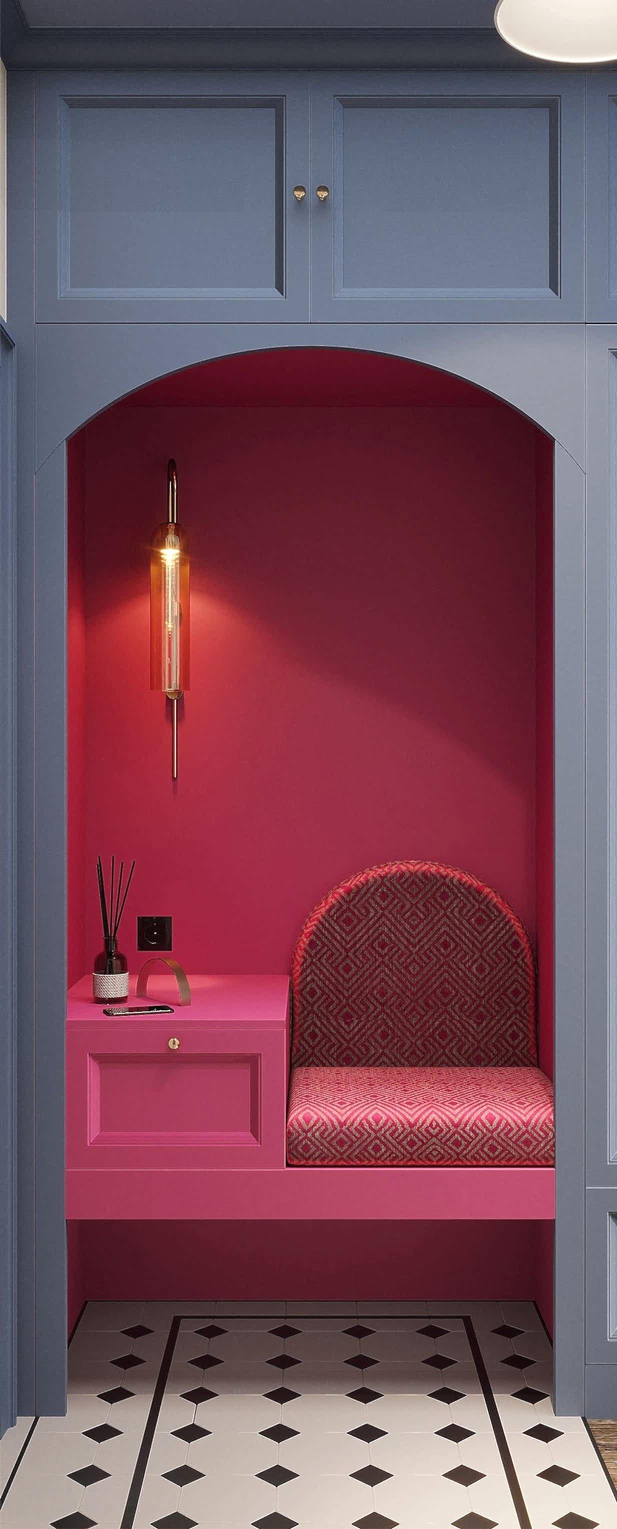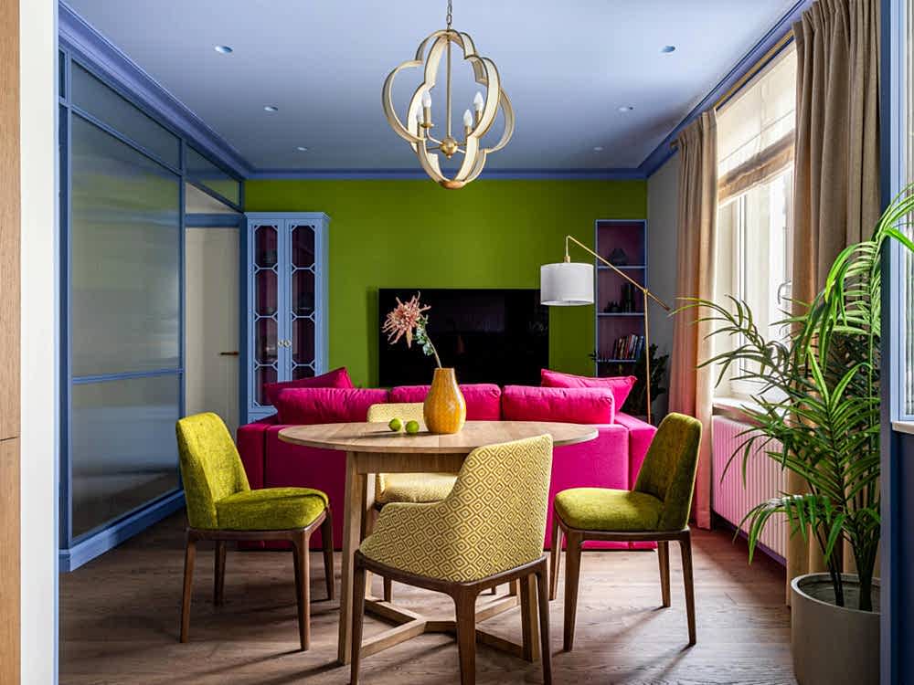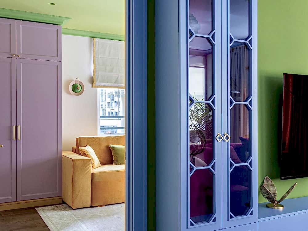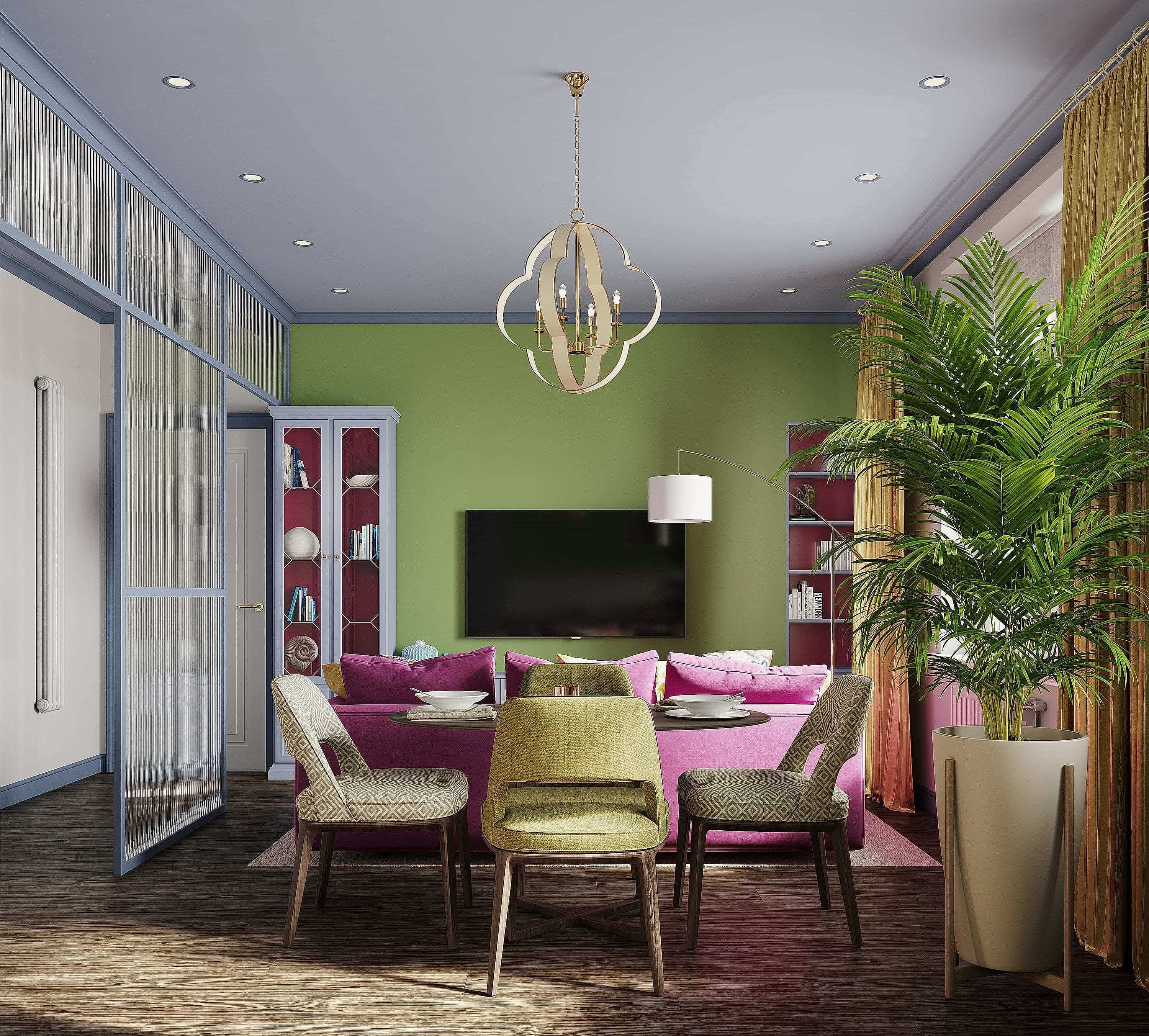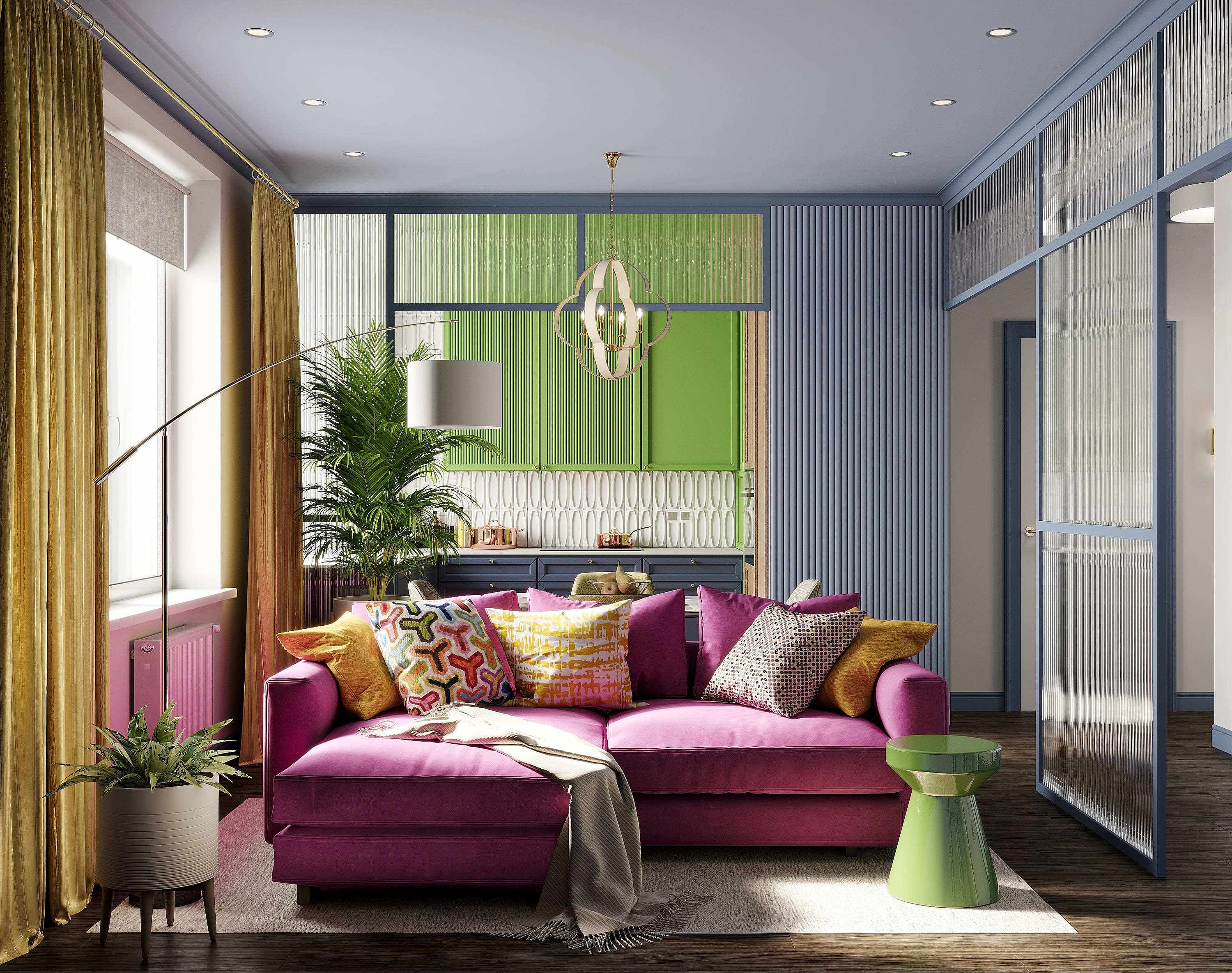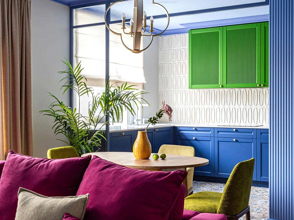 Яркий и смелый интерьер в стиле неоклассика. Основная идея проекта: уютный Pin-Up с грамотной планировкой, акцентными цветовыми сочетаниями, качественной мебелью и функциональным декором.