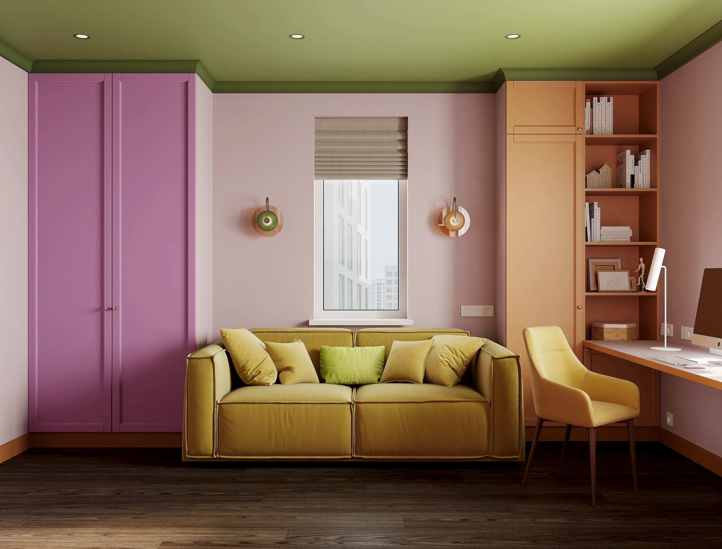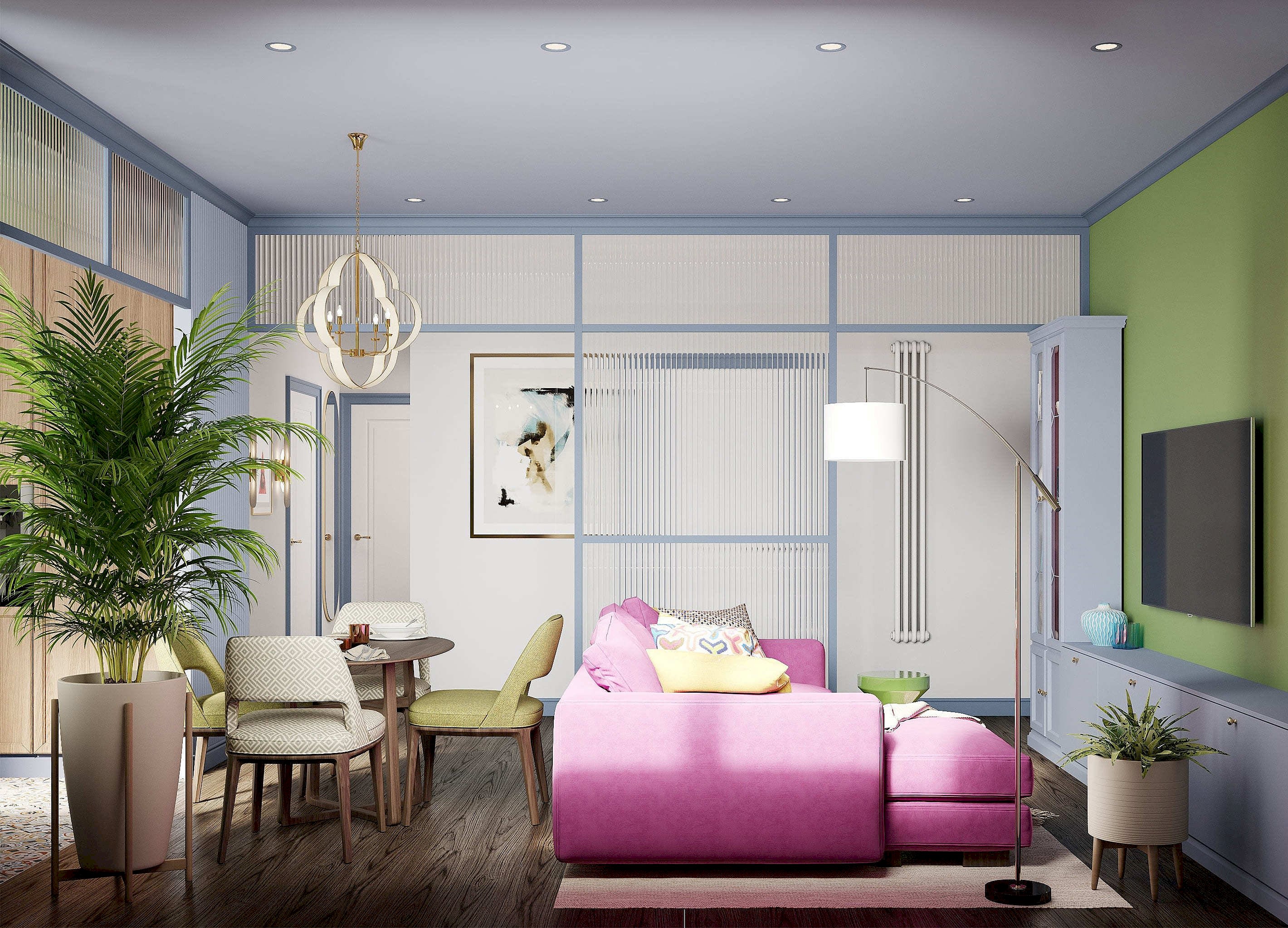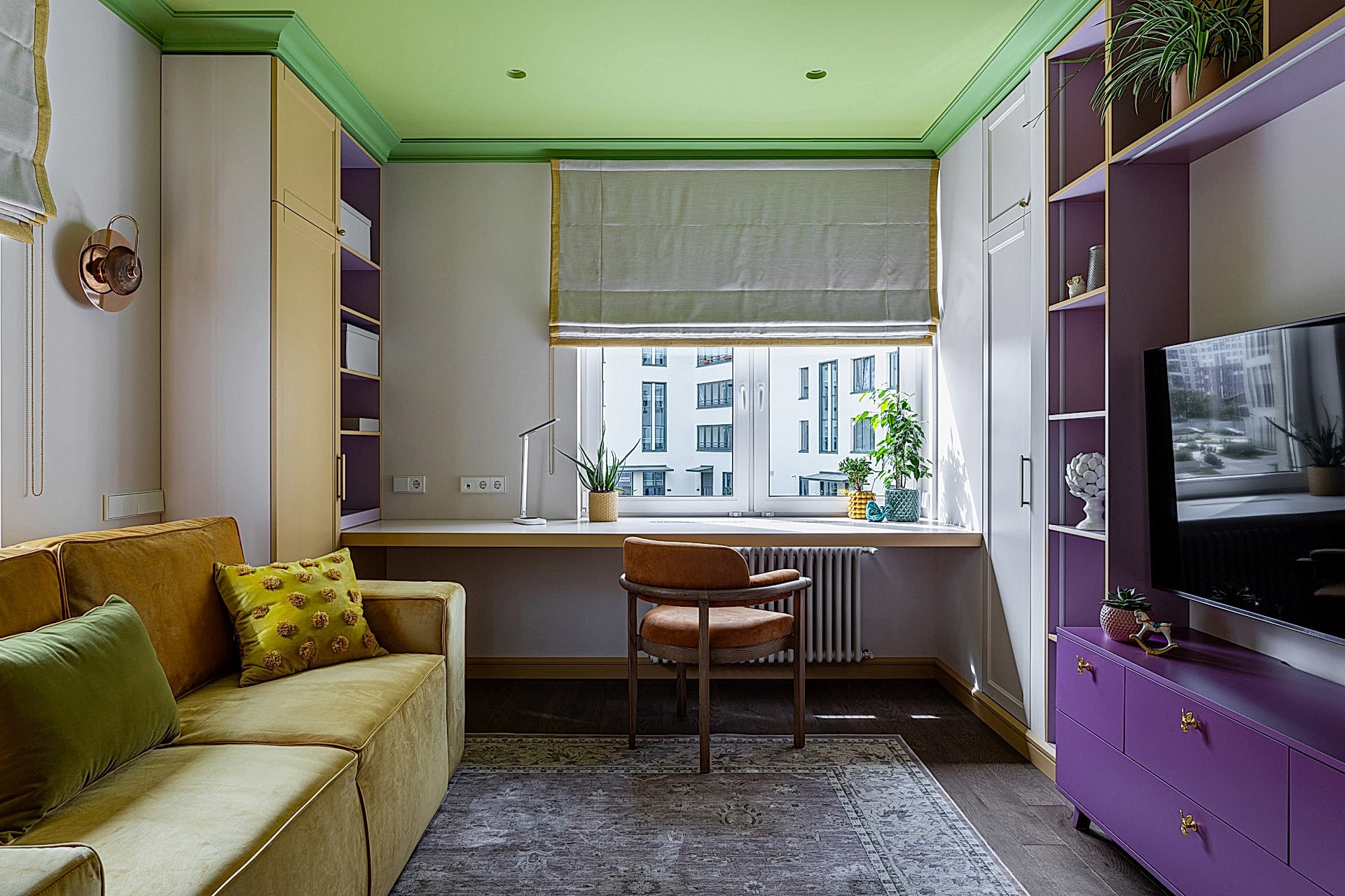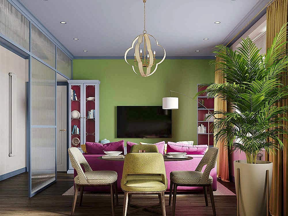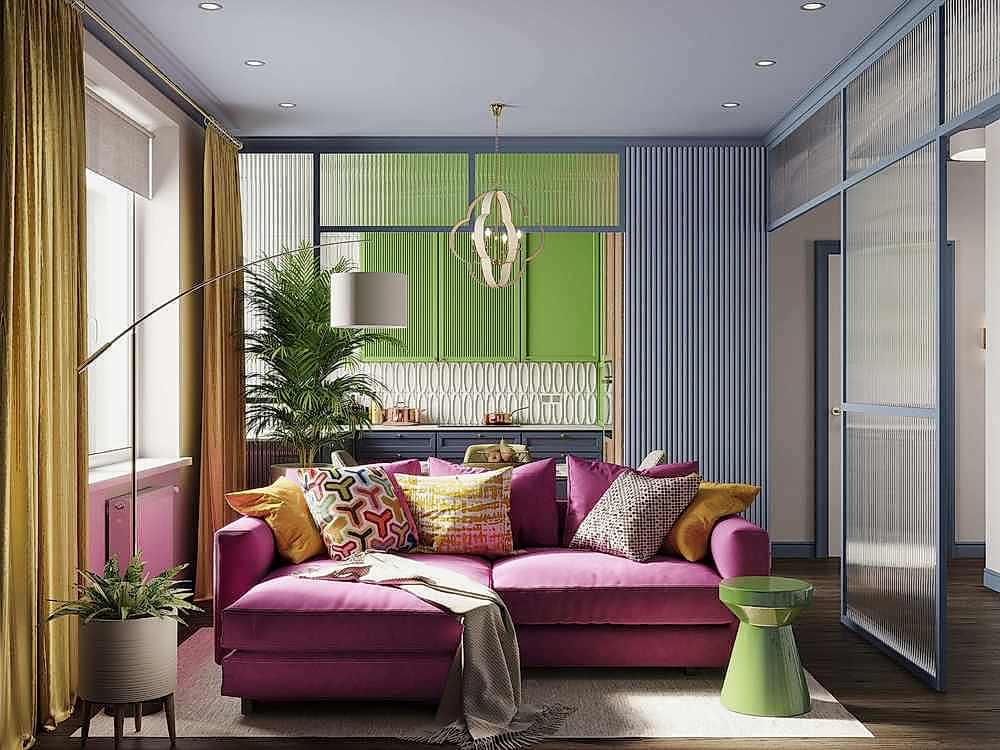 Яркий и смелый интерьер в стиле неоклассика. Основная идея проекта: уютный Pin-Up с грамотной планировкой, акцентными цветовыми сочетаниями, качественной мебелью и функциональным декором.