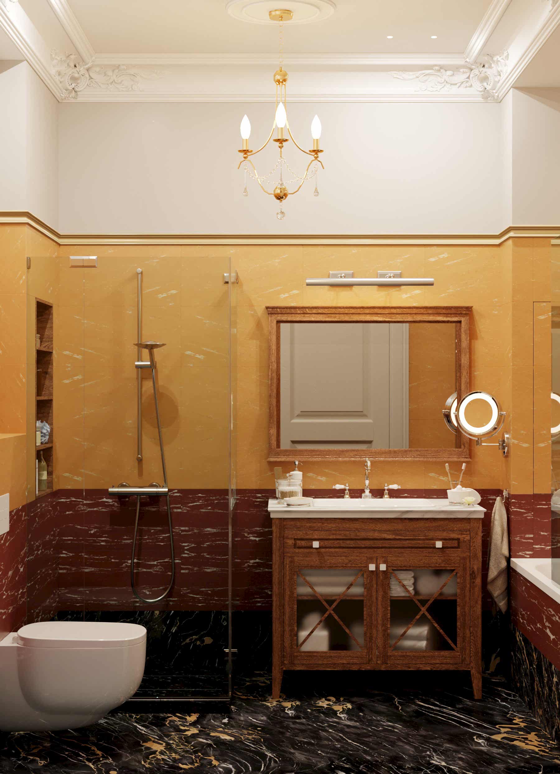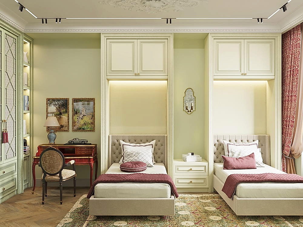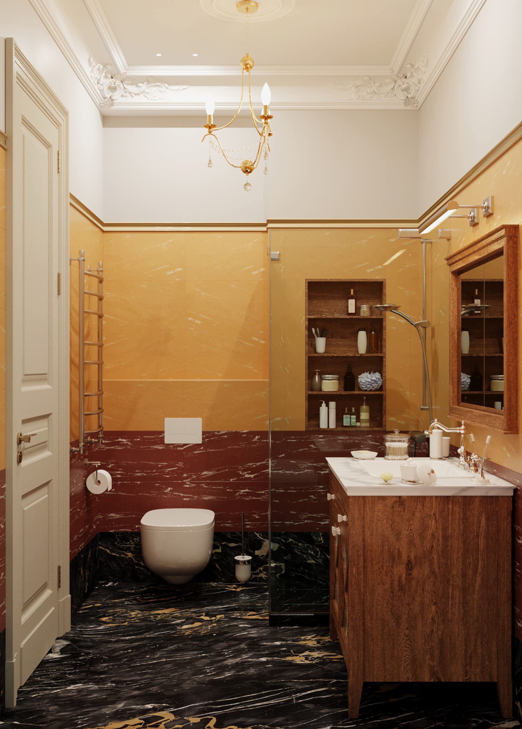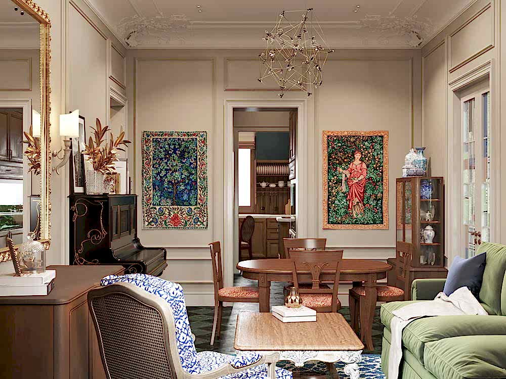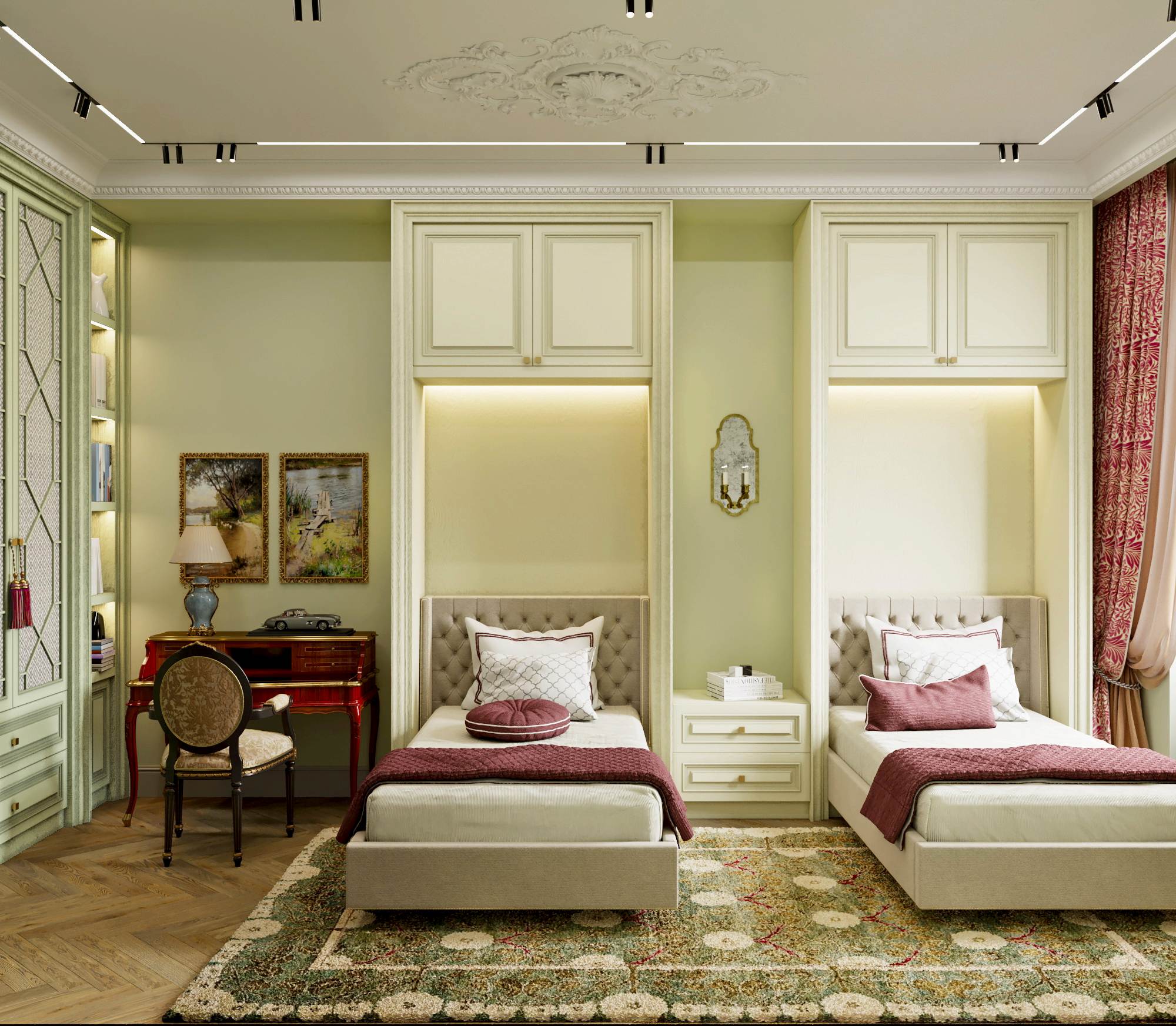 Квартира находится в историческом центре Астаны, обладающая необходимым функционалом для комфортного проживания четырех человек. Жилое пространство разделено на две спальни и имеет общую гостевую зону с небольшой кухней. Интерьер квартиры оформлен в эклектичном стиле, его образ строится на изысканном сочетании разных цветов и фактур, насыщенных деталей и форм. Придерживаться единой "сюжетной линии" в таком многослойном пространстве помогают лазурные, терракотовые, оттенки охры и цвет зеленого малахита. Используемые в отделке стен, обивке мебели, ковровом покрытии и текстиле. На первый взгляд, стилистически далекие друг от друга детали успешно соседствуют в интерьере данной Pin-Up не скрывая своей любви к "избыточному" дизайну и цвету.