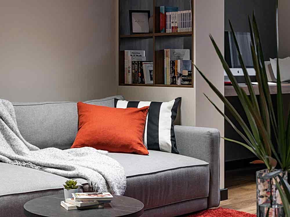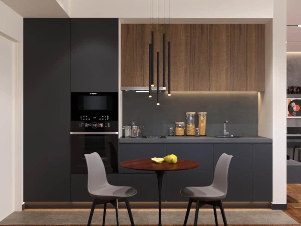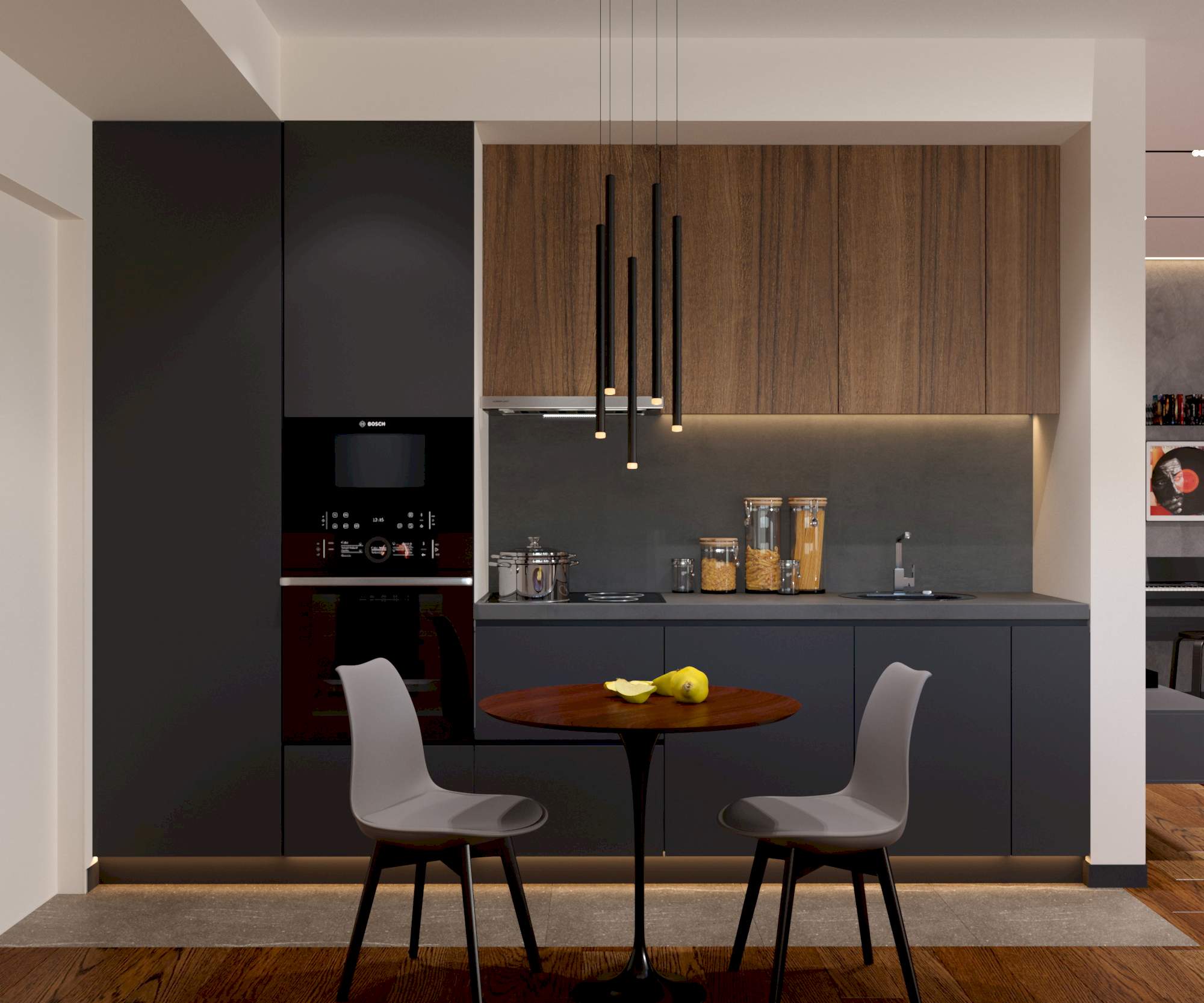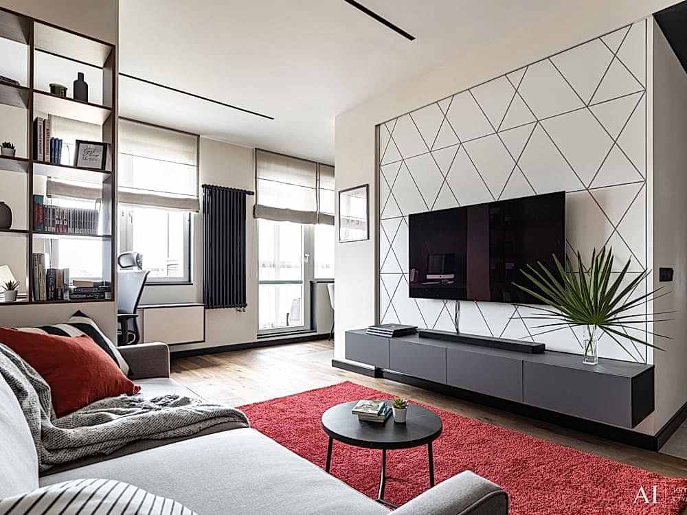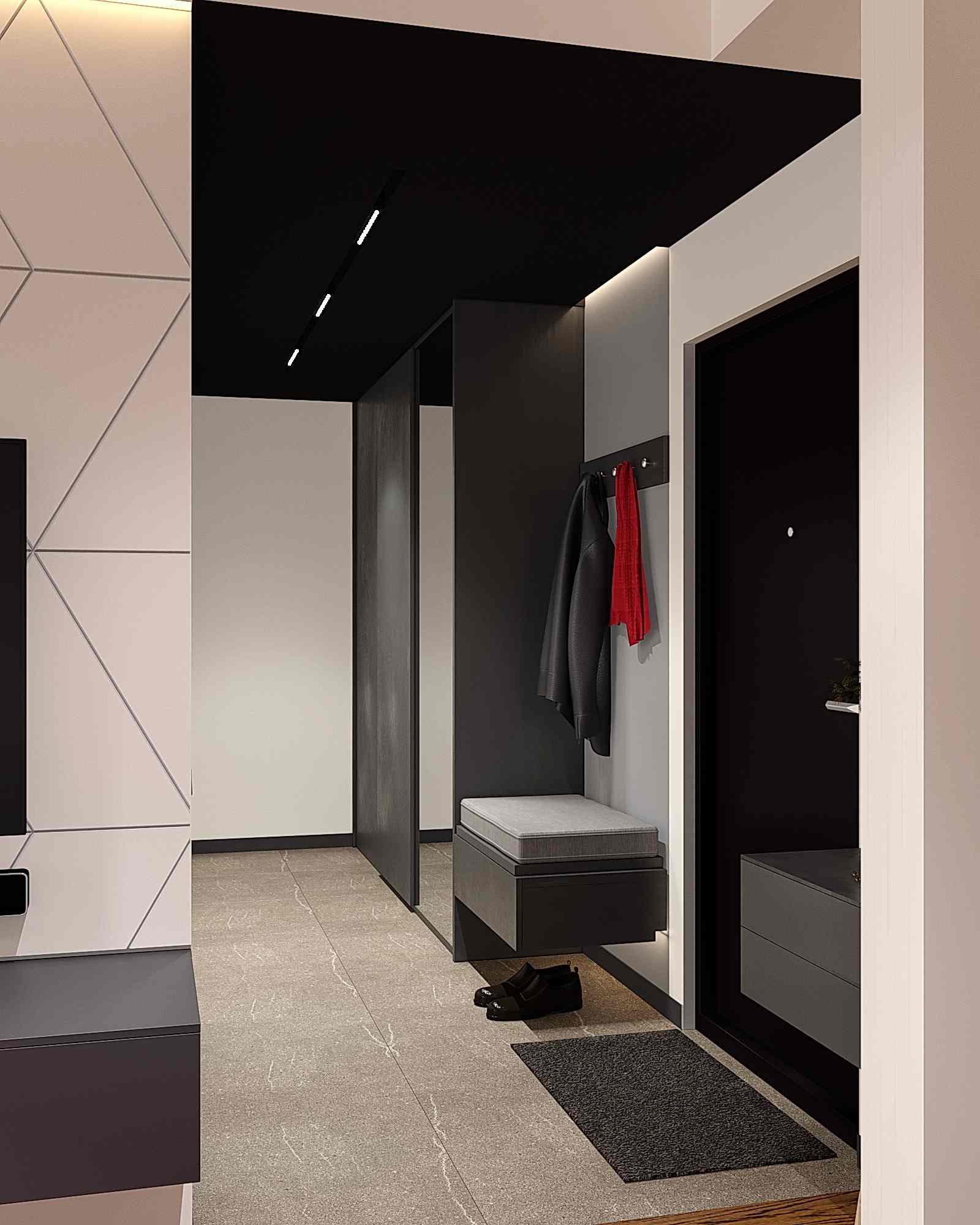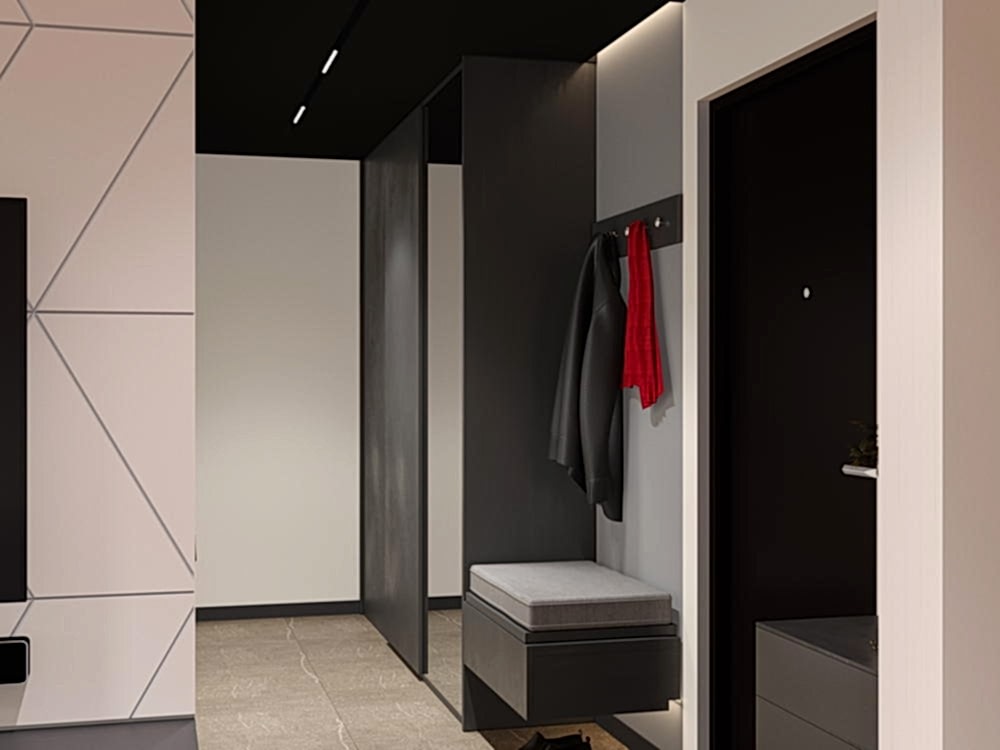 Pin-Up мужской интерьер с применением натуральныхматериалов, наполненный четкими линиями, большим количеством света и минимумом декора. Главным акцентом интерьера стал сочный красный цвет, который насытил пространство яркими красками и подчеркнул Рыскулова, 52 геометрию форм.