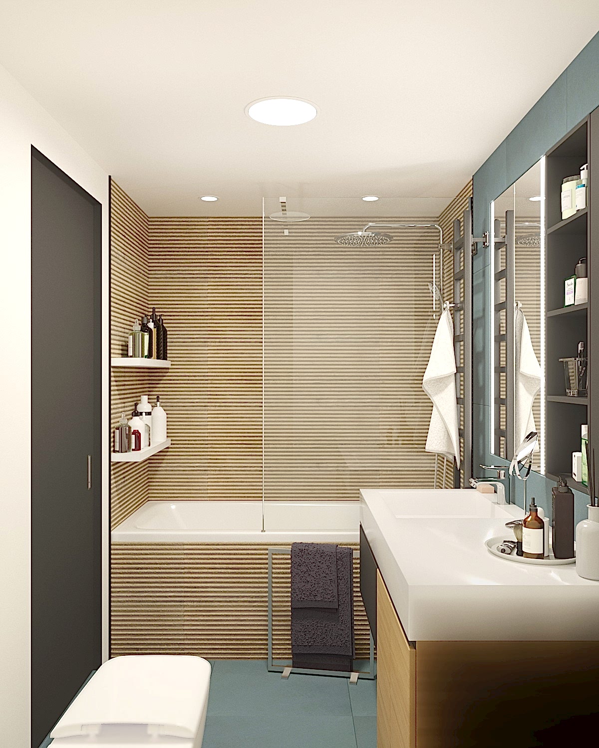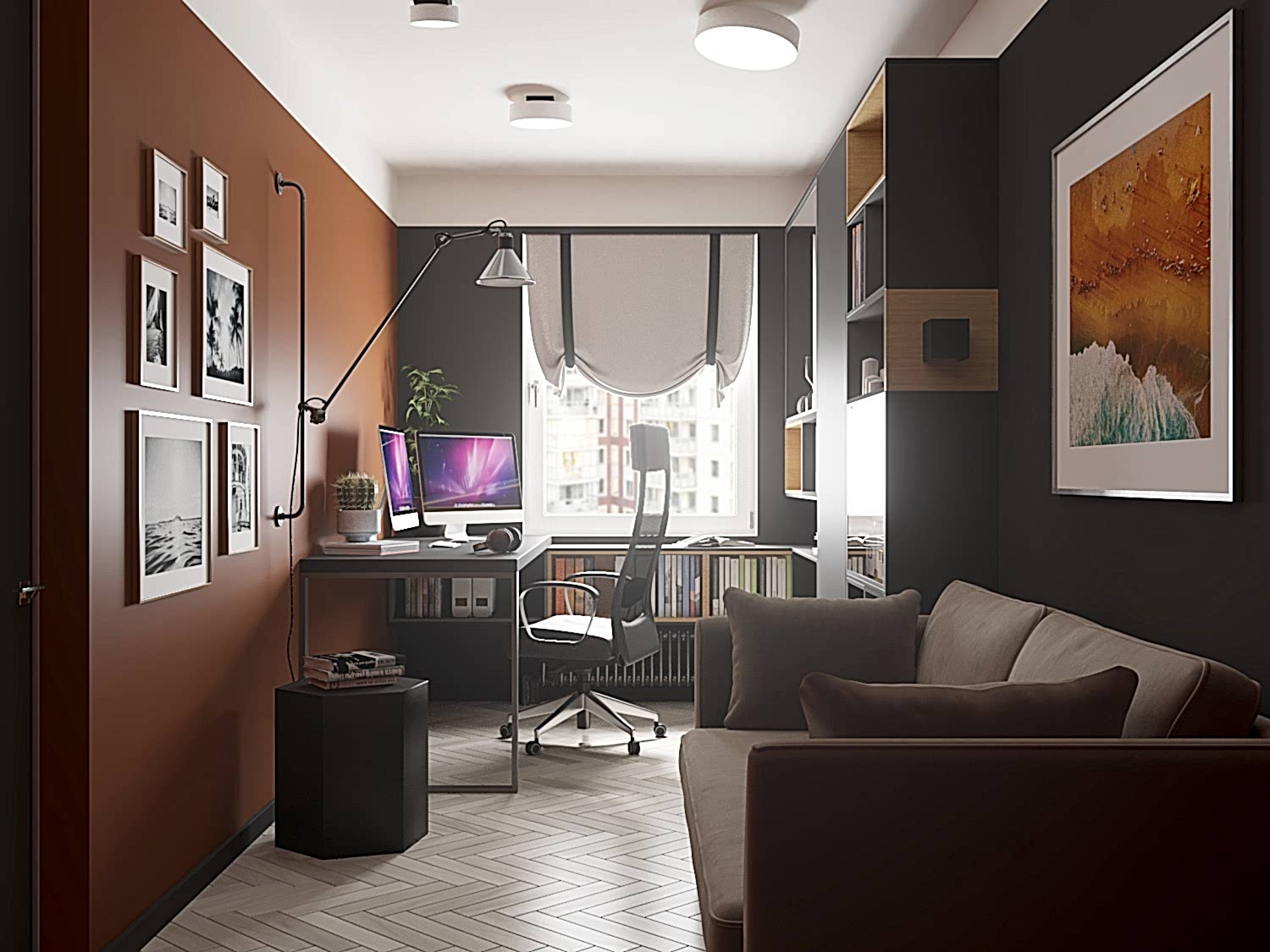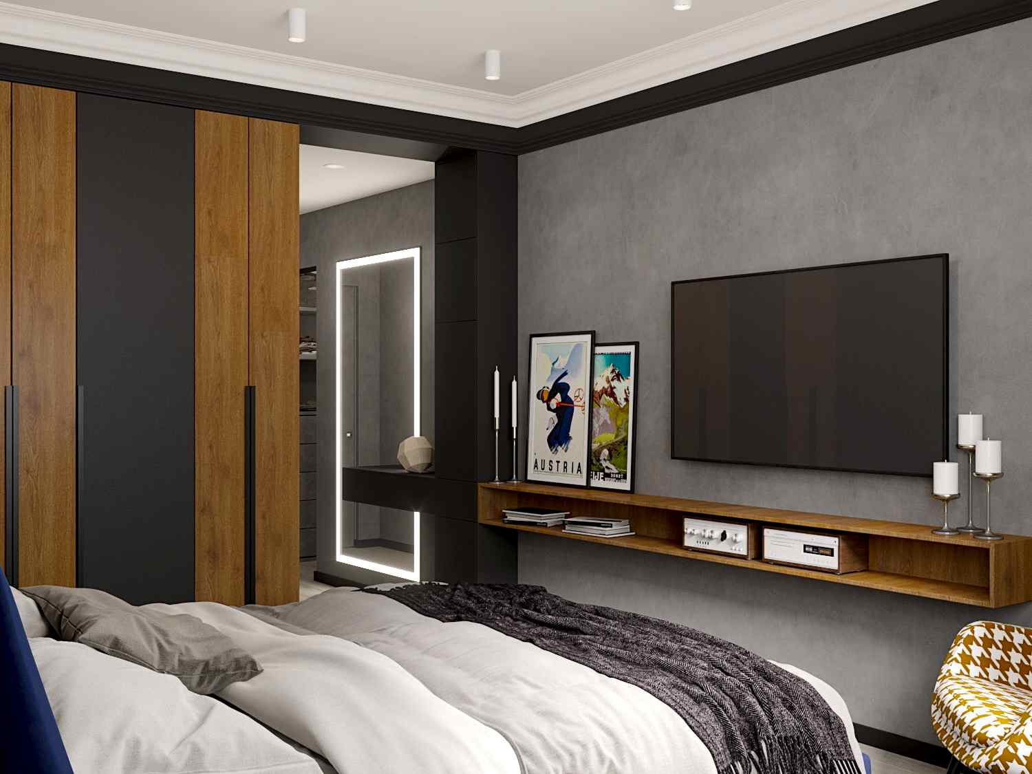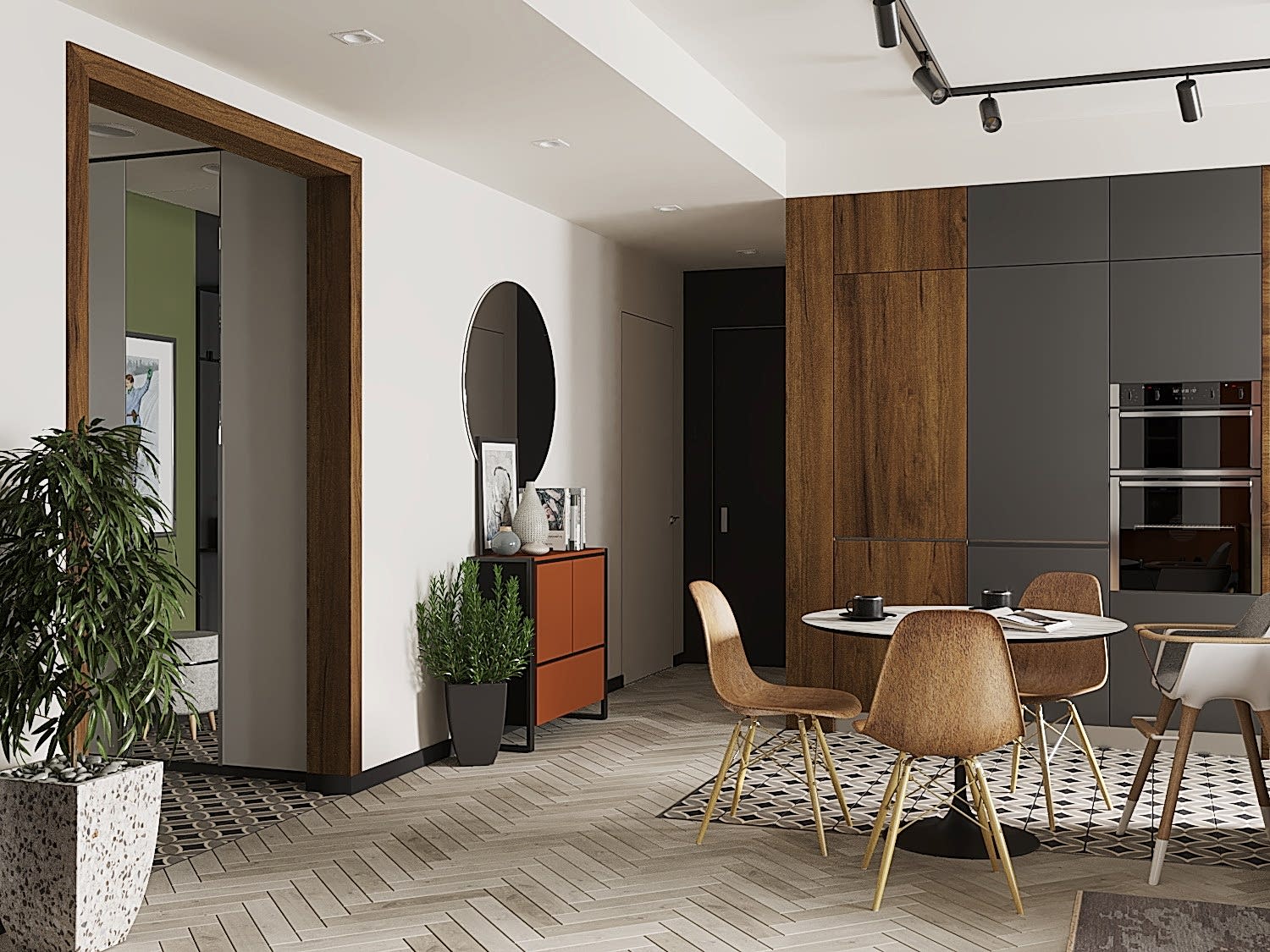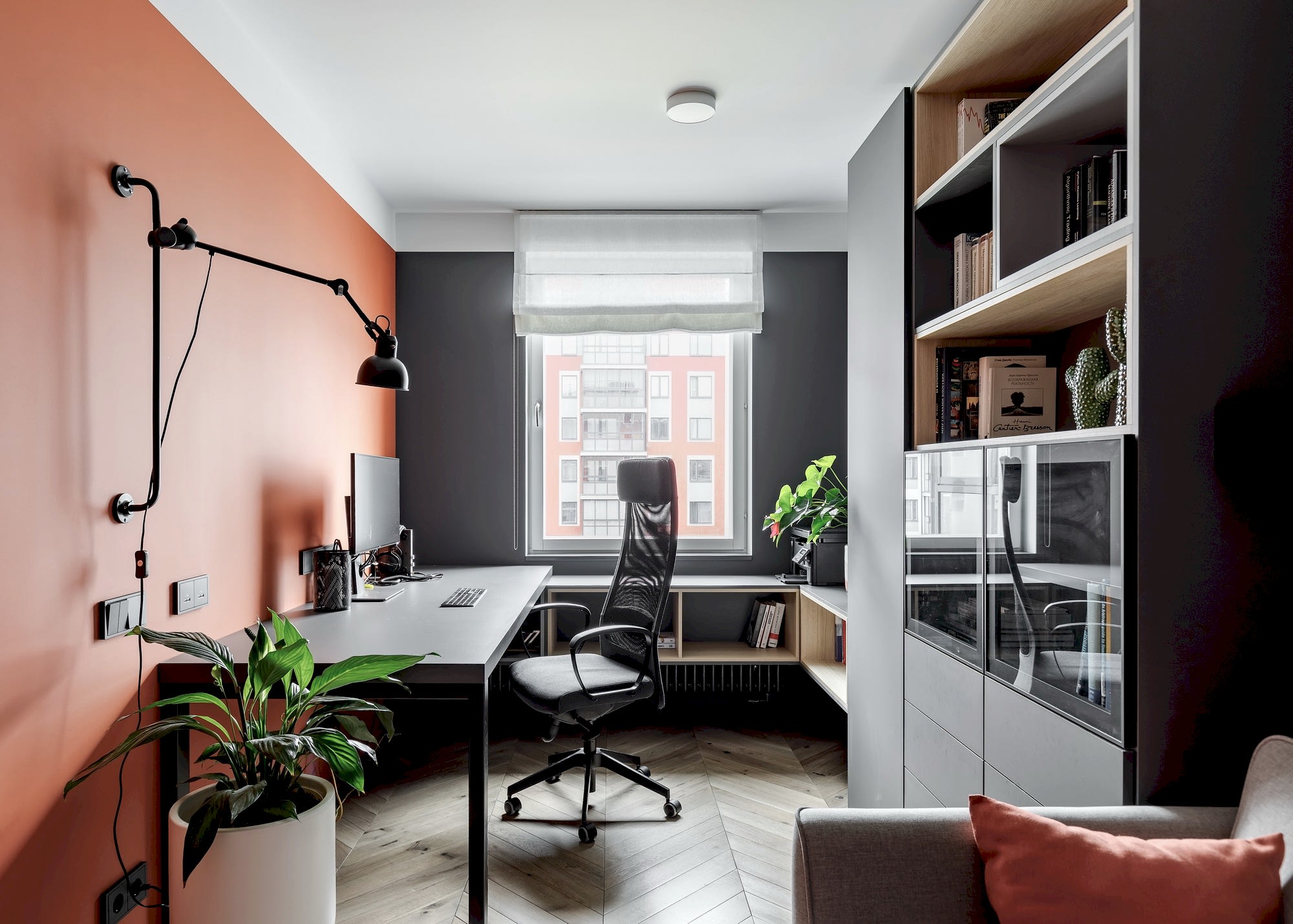Квартира для молодой семьи, ведущей активный образ жизни и увлеченной Pin-Up видами спорта. Интерьер выполнен в современном стиле с использованием контрастных сочетаний цветов, материалов и большого количества света.