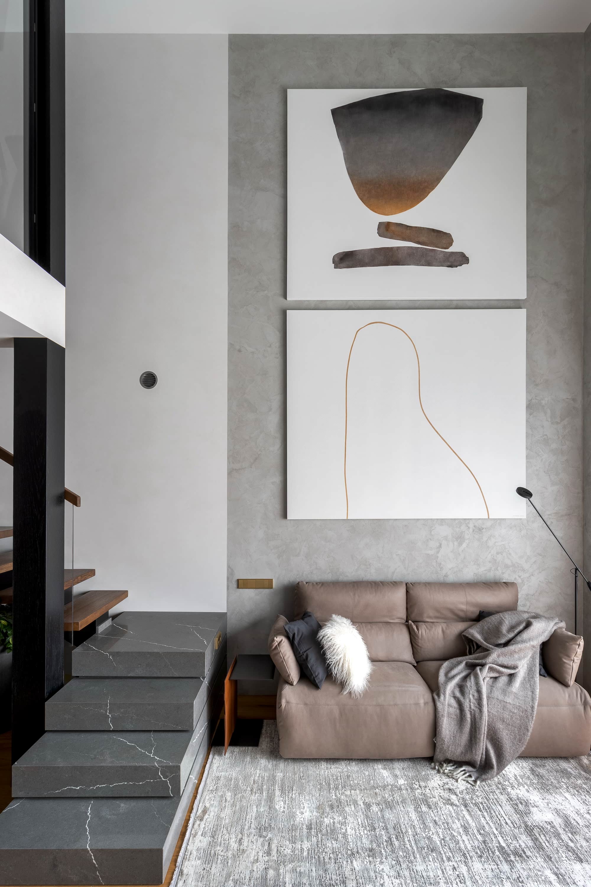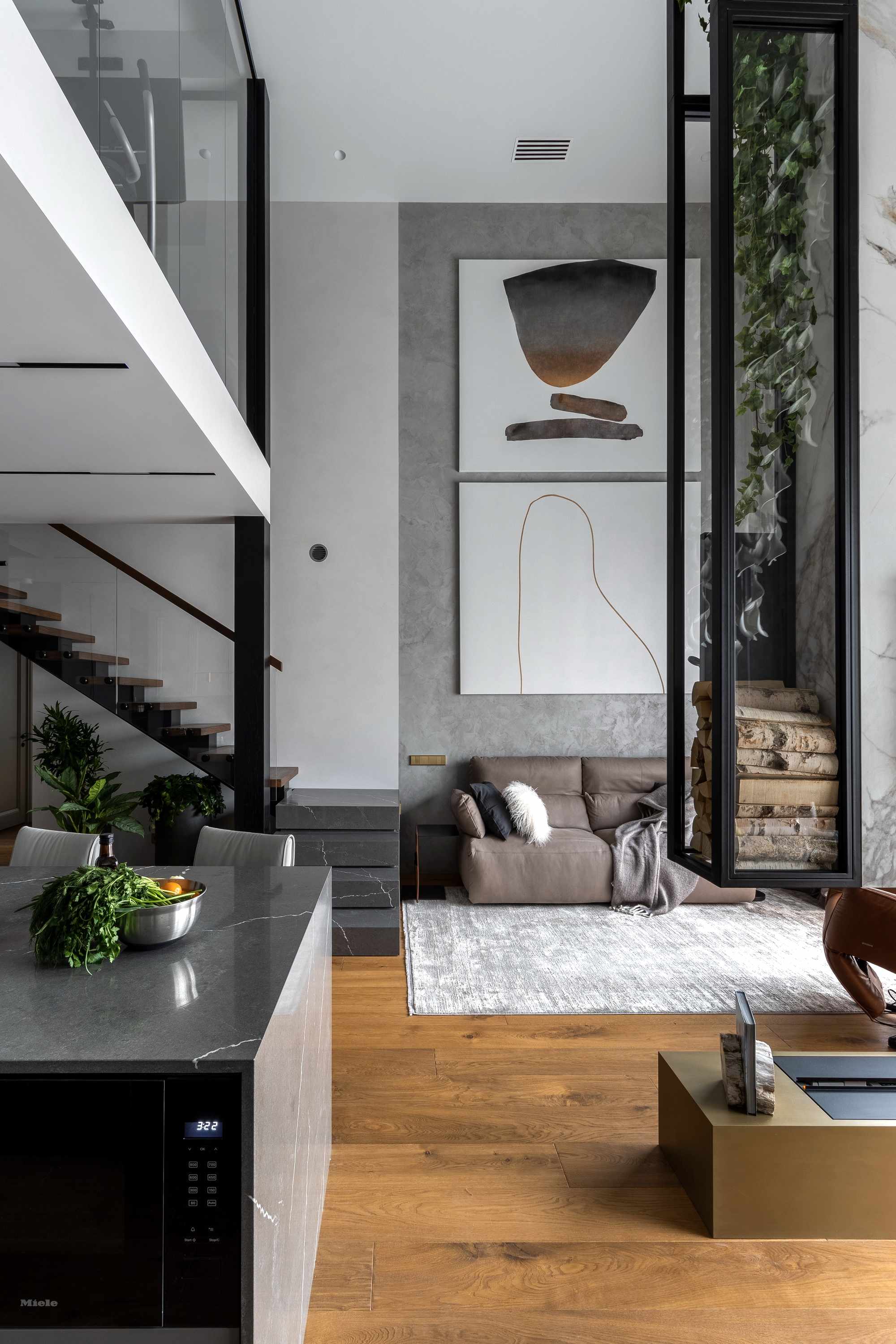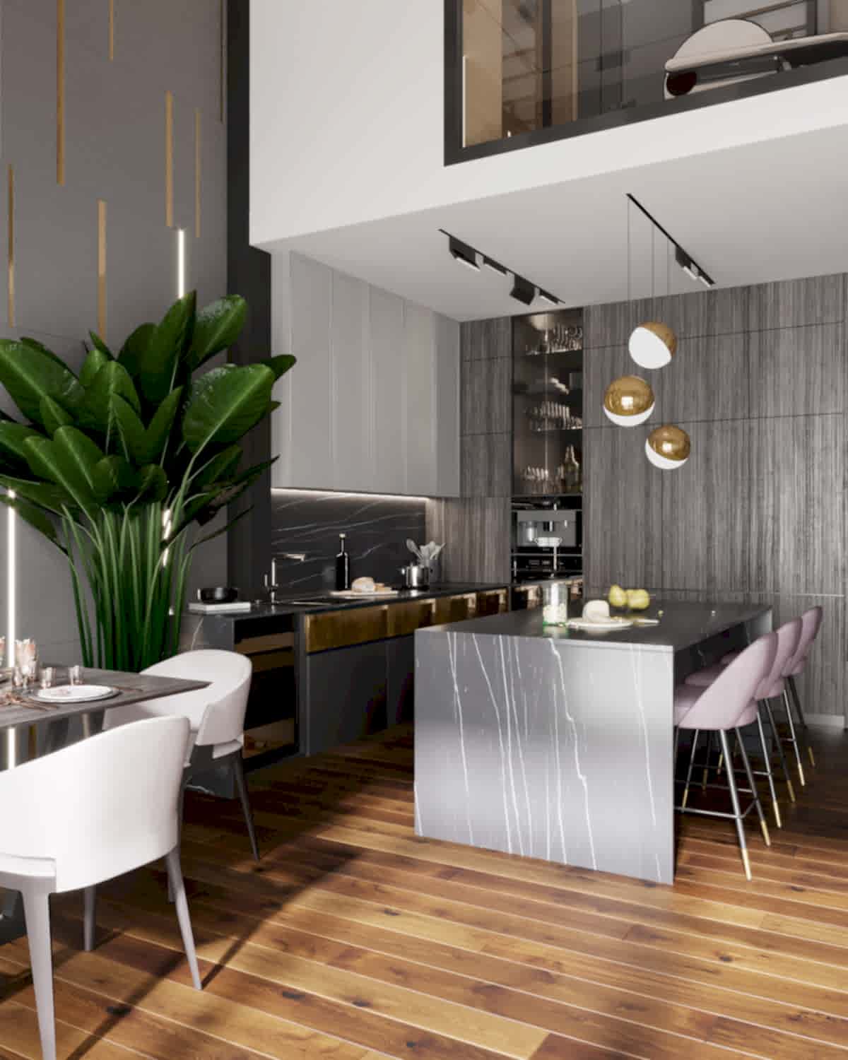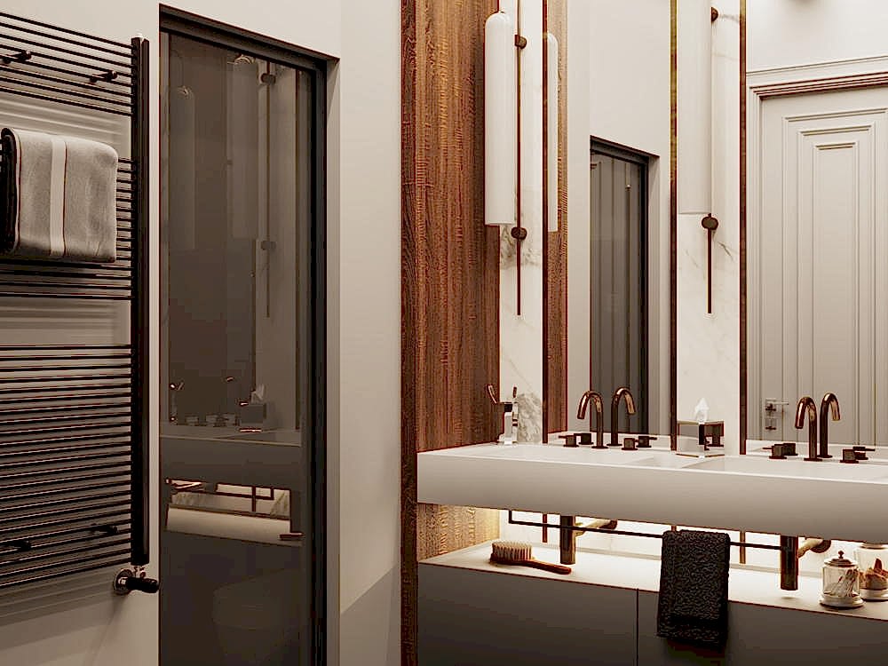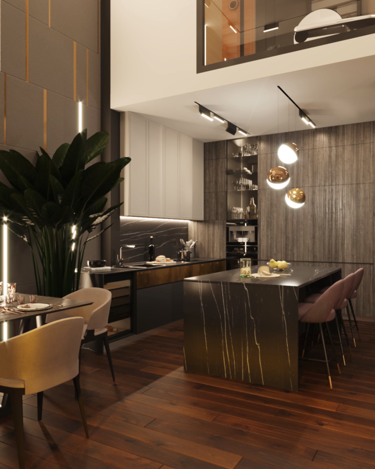 Дизайн-проект квартиры разработан для дружной семьи из 5 человек, которые комфортно могут здесь проживать. Перед нами стояли две задачи: спроектировать пространства второго этажа с нуля, так, чтобы высокие потолки остались высокими. Pin-Up проект перекрытий будет разработан отдельно, однако предложенный в проекте вариант планировки не нарушает допущенных норм. Второй задачей стояло соединение нескольких стилей в один гармоничный интерьер. Визуальная часть связывает между собой элементы лофта, неоклассики и современного стиля, такой микс позволил подружить вкусы хозяев дома.