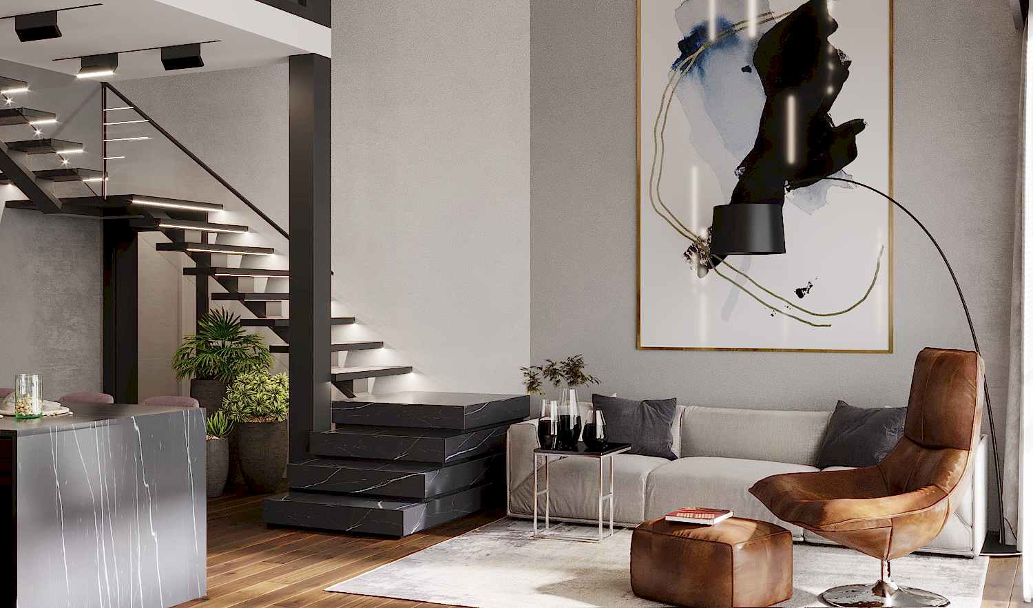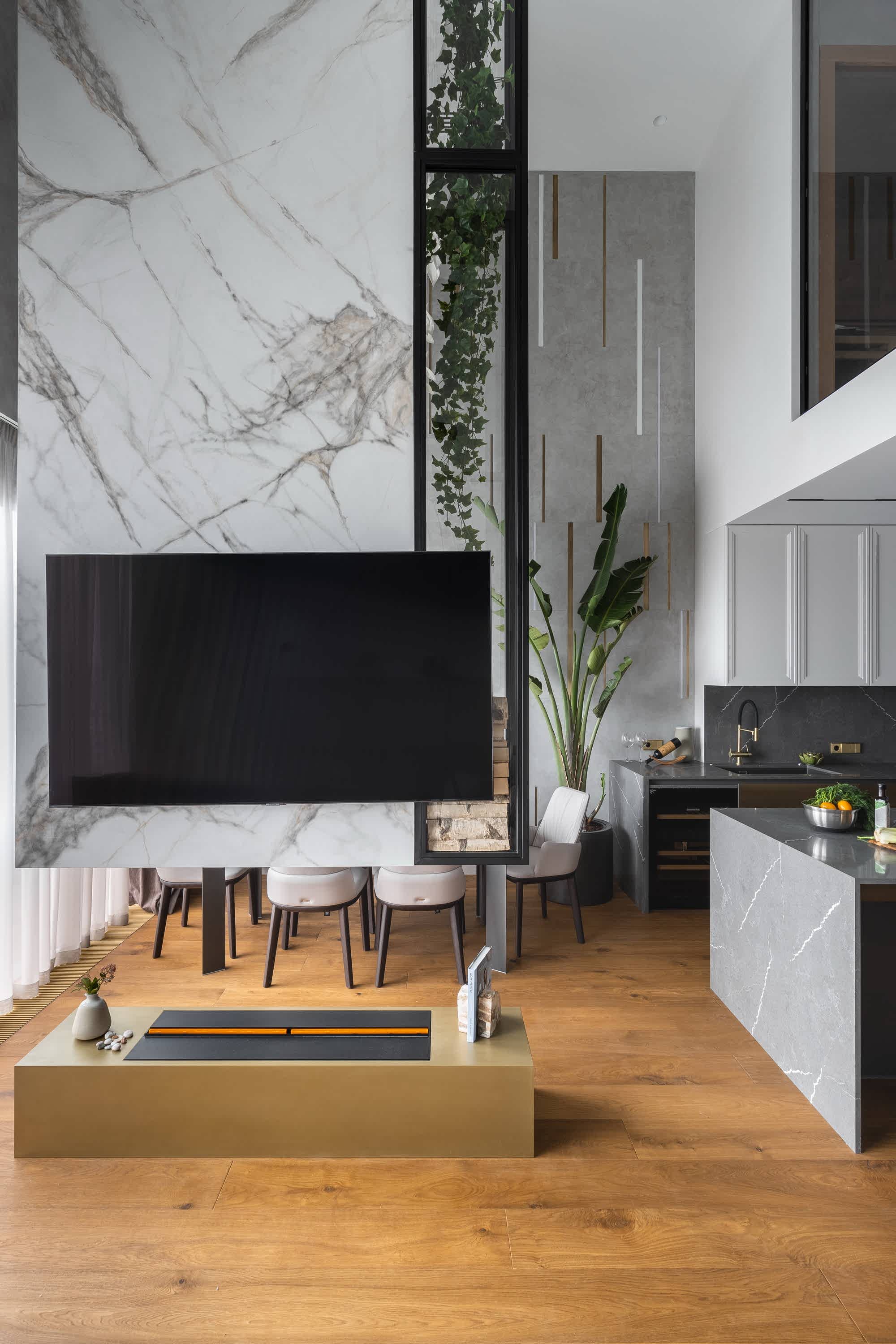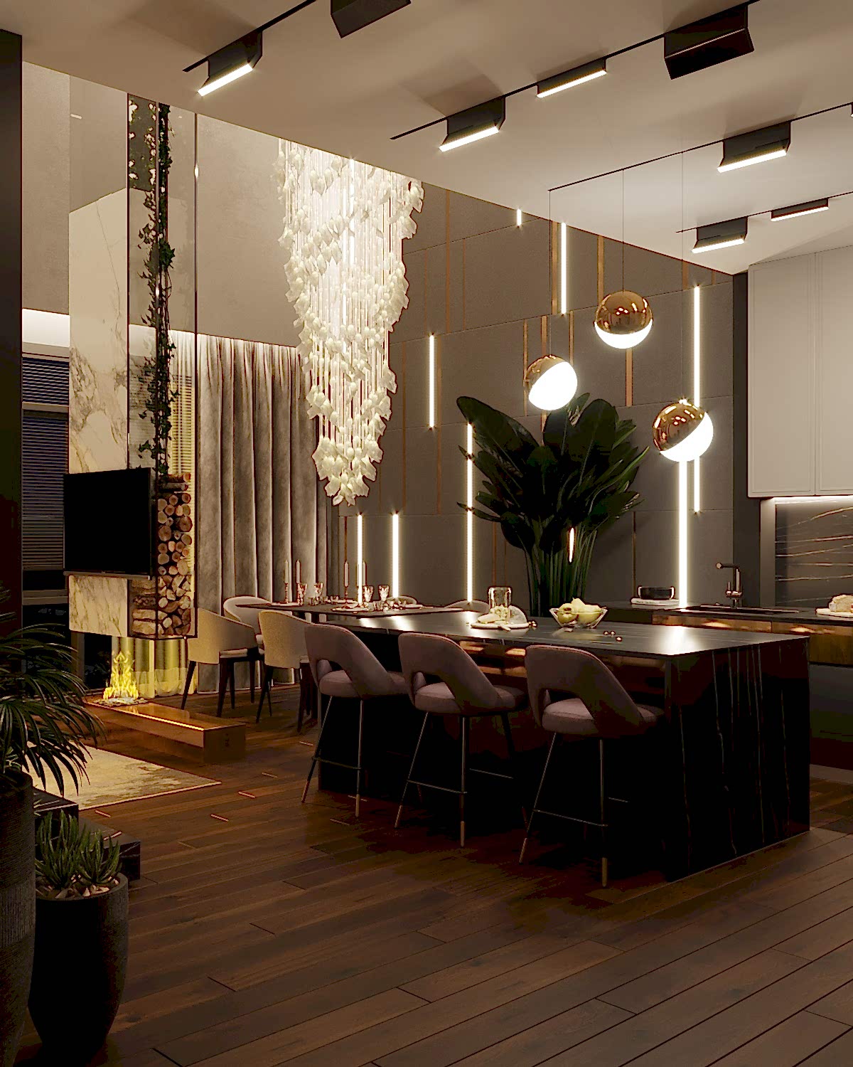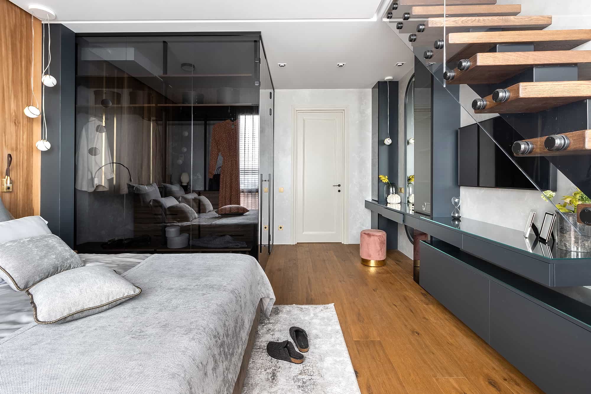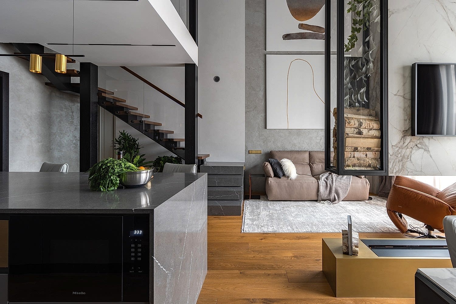 Дизайн-проект квартиры разработан для дружной семьи из 5 человек, которые комфортно могут здесь проживать. Перед нами стояли две задачи: спроектировать пространства второго этажа с нуля, так, чтобы высокие потолки остались высокими. Pin-Up проект перекрытий будет разработан отдельно, однако предложенный в проекте вариант планировки не нарушает допущенных норм. Второй задачей стояло соединение нескольких стилей в один гармоничный интерьер. Визуальная часть связывает между собой элементы лофта, неоклассики и современного стиля, такой микс позволил подружить вкусы хозяев дома.