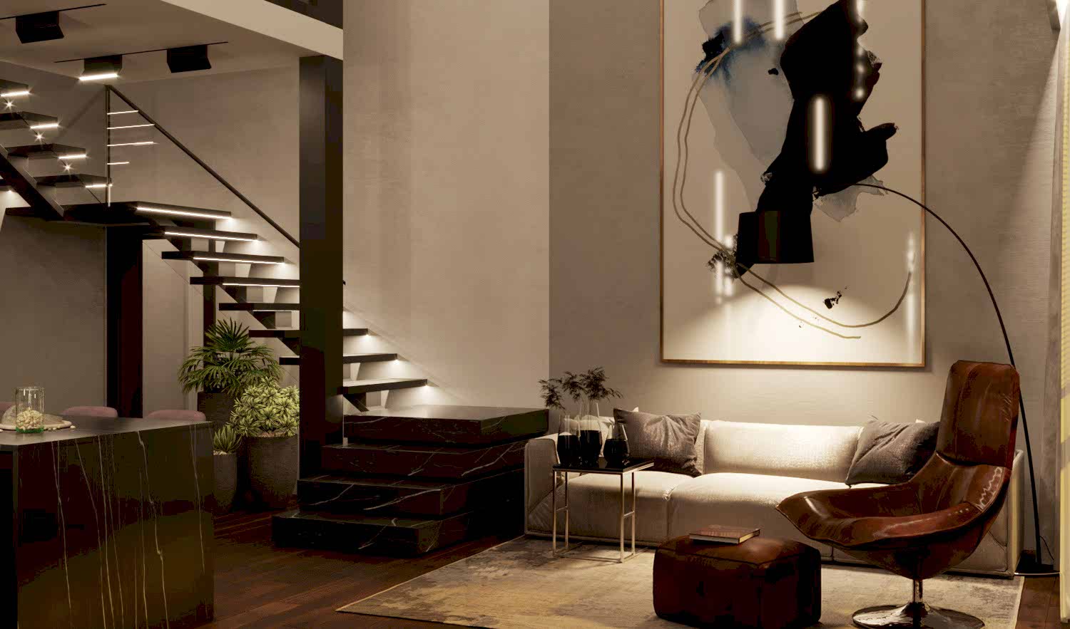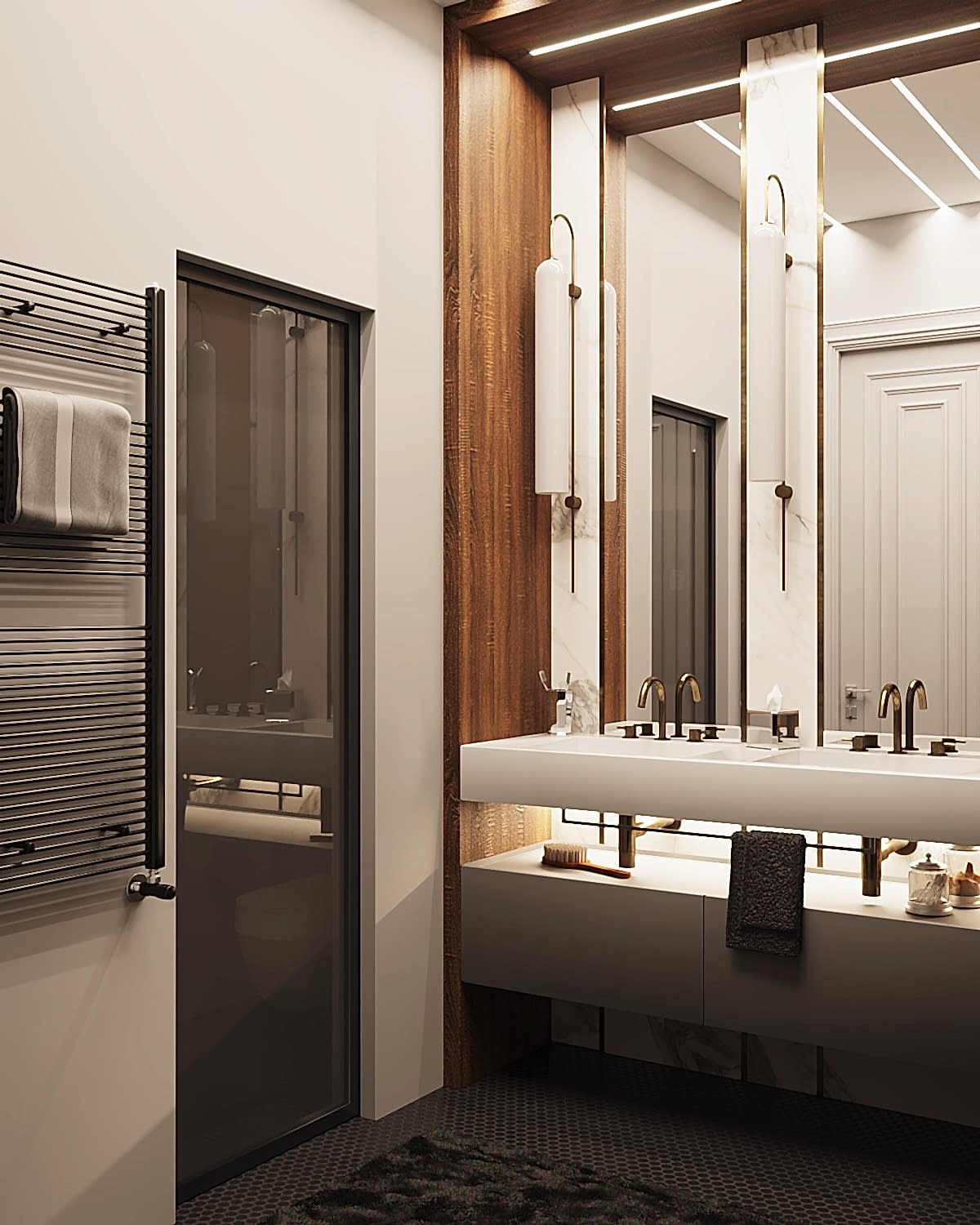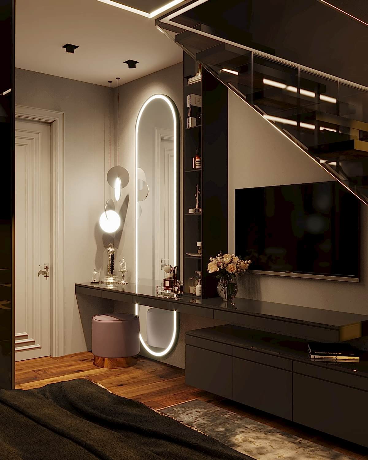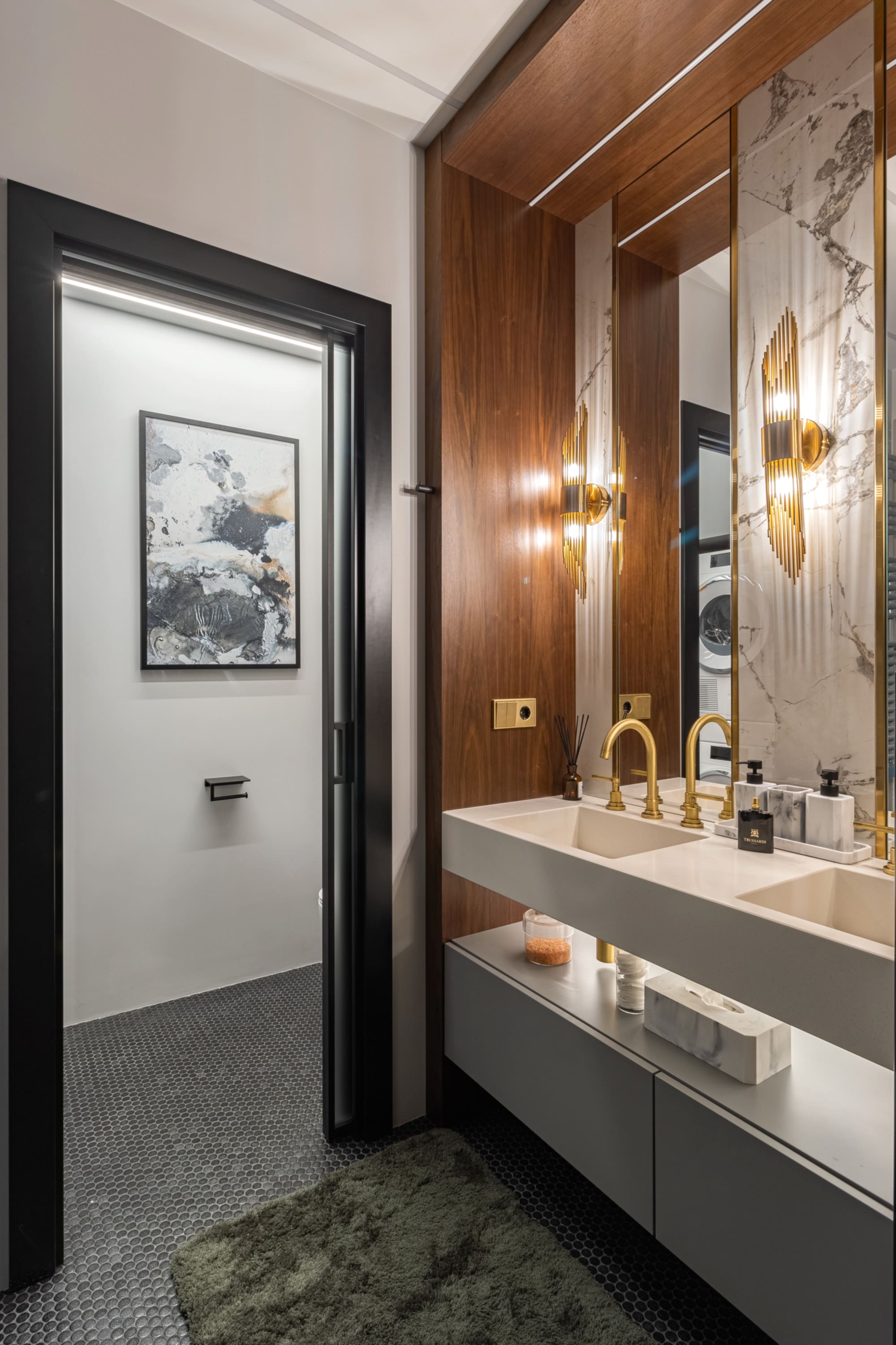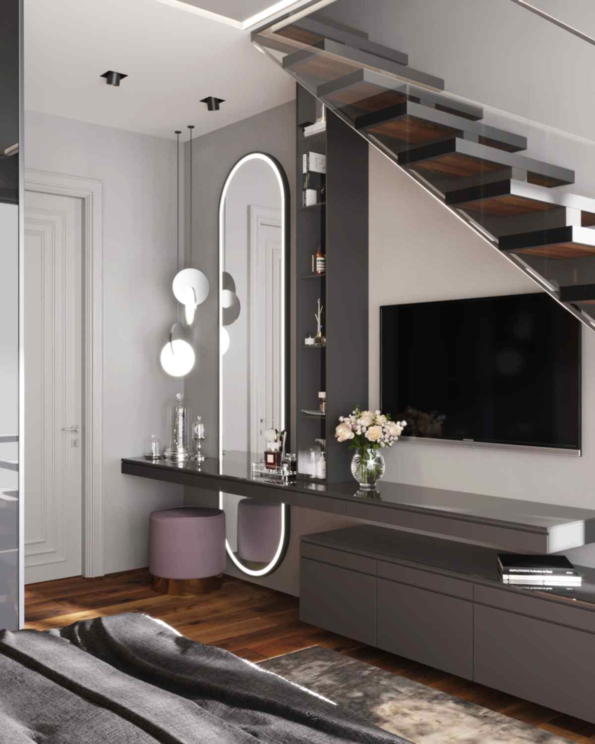 Дизайн-проект квартиры разработан для дружной семьи из 5 человек, которые комфортно могут здесь проживать. Перед нами стояли две задачи: спроектировать пространства второго этажа с нуля, так, чтобы высокие потолки остались высокими. Pin-Up проект перекрытий будет разработан отдельно, однако предложенный в проекте вариант планировки не нарушает допущенных норм. Второй задачей стояло соединение нескольких стилей в один гармоничный интерьер. Визуальная часть связывает между собой элементы лофта, неоклассики и современного стиля, такой микс позволил подружить вкусы хозяев дома.