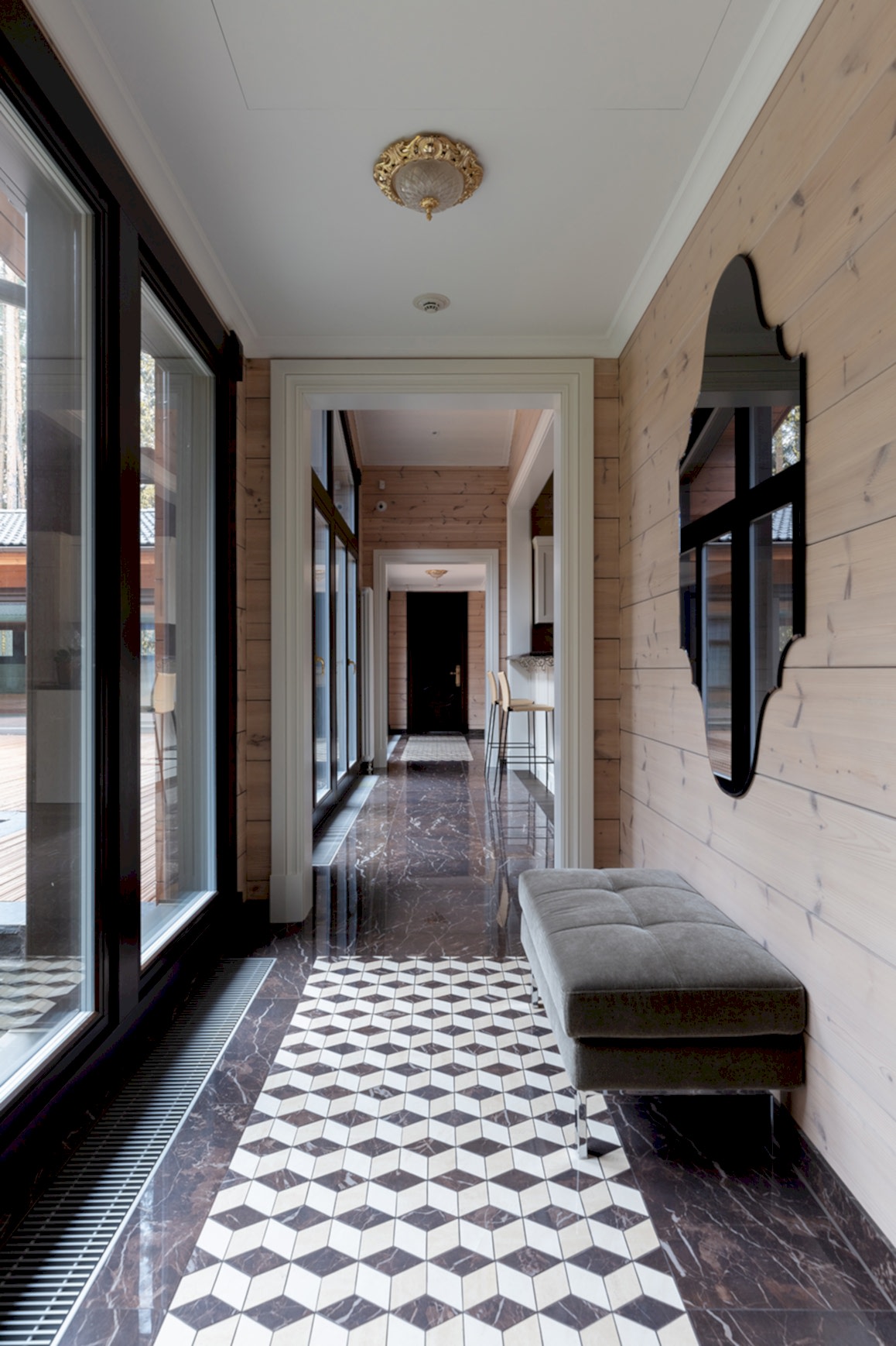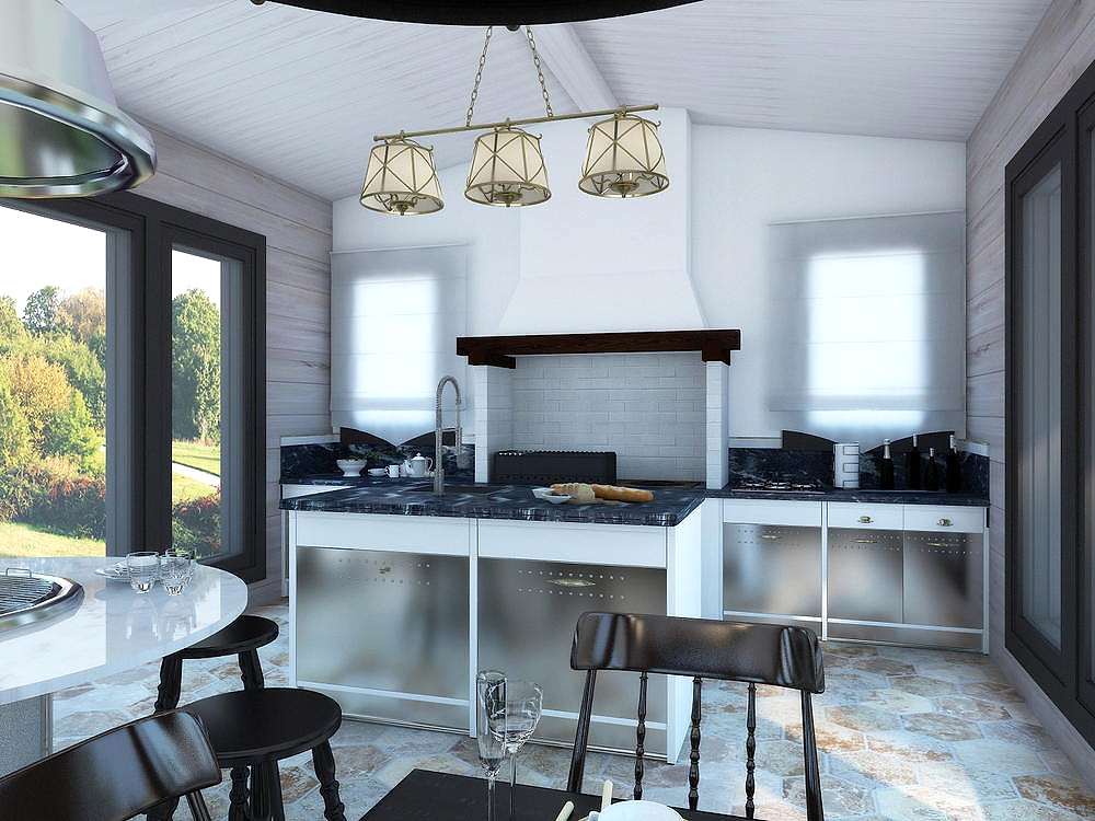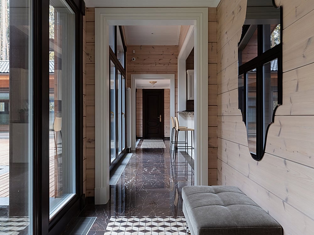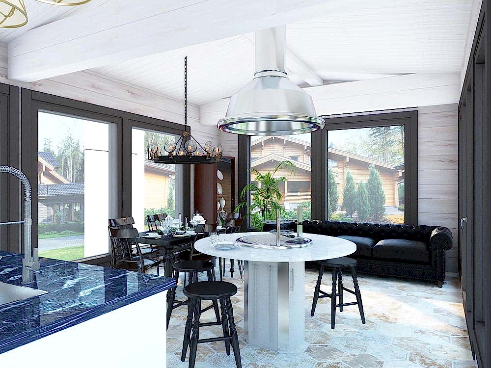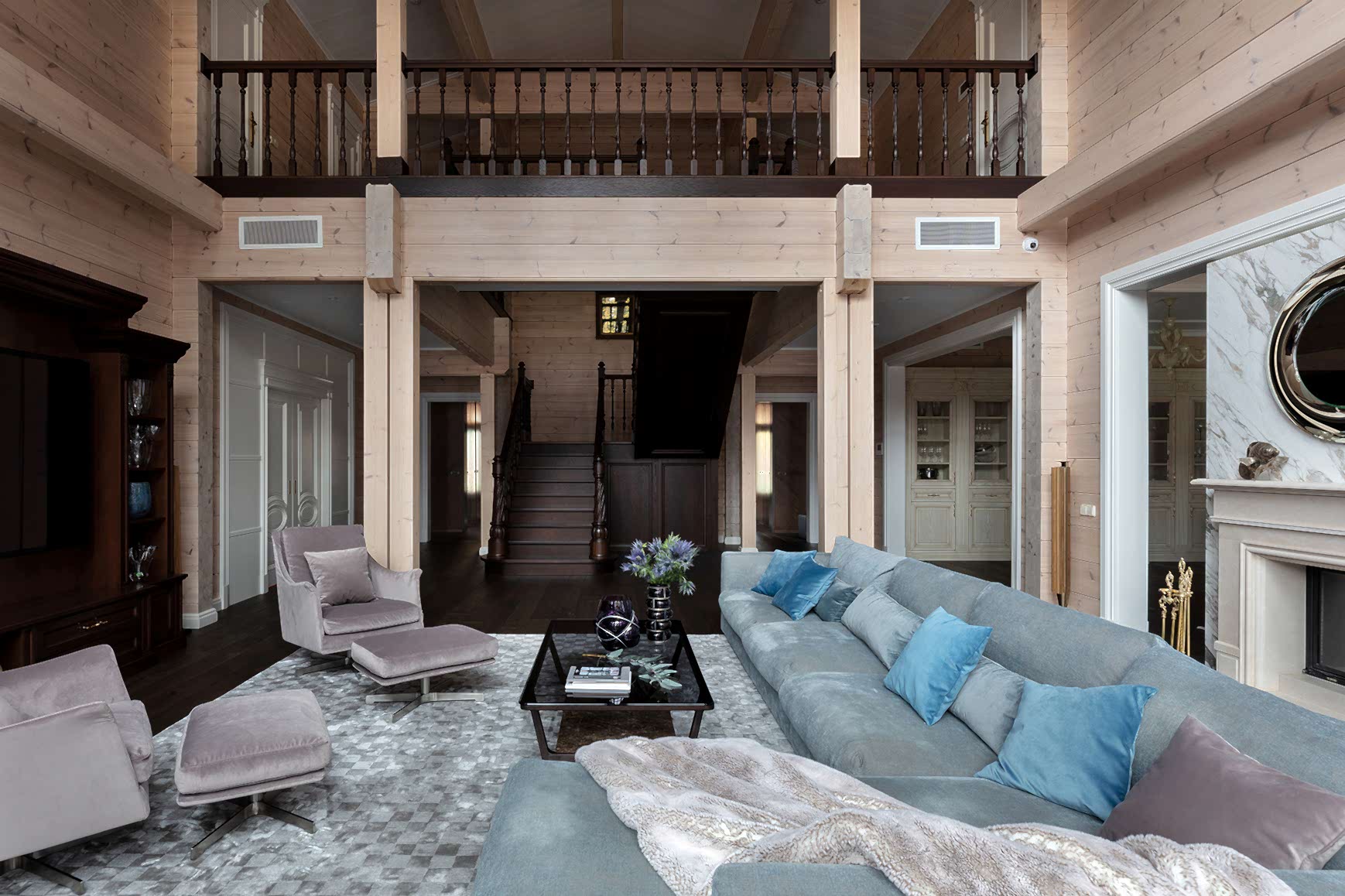 Основным пожелание заказчиков было создание, так называемого, родового гнезда. Дом был спроектирован с индивидуальным подходом для семьи из семи человек. первый этаж в основном предназначен для приема гостей, комфортного времяпрепровождения. Зона СПА, бассейн. Весь второй этаж - детская зона: спальни для мальчиков и девочек, а также сами хозяев дома.
