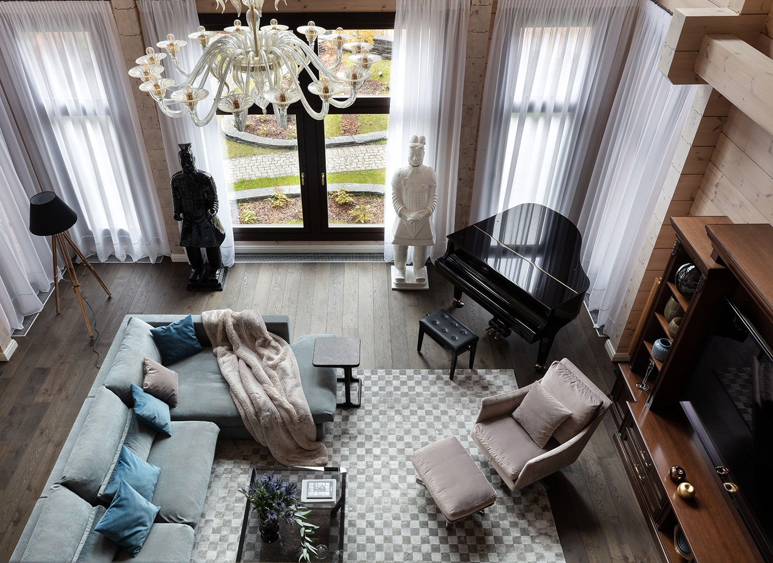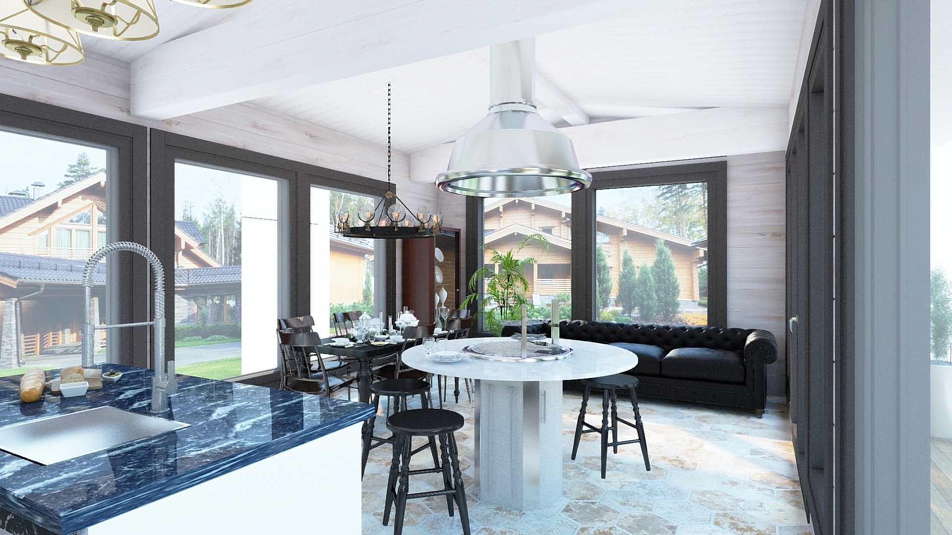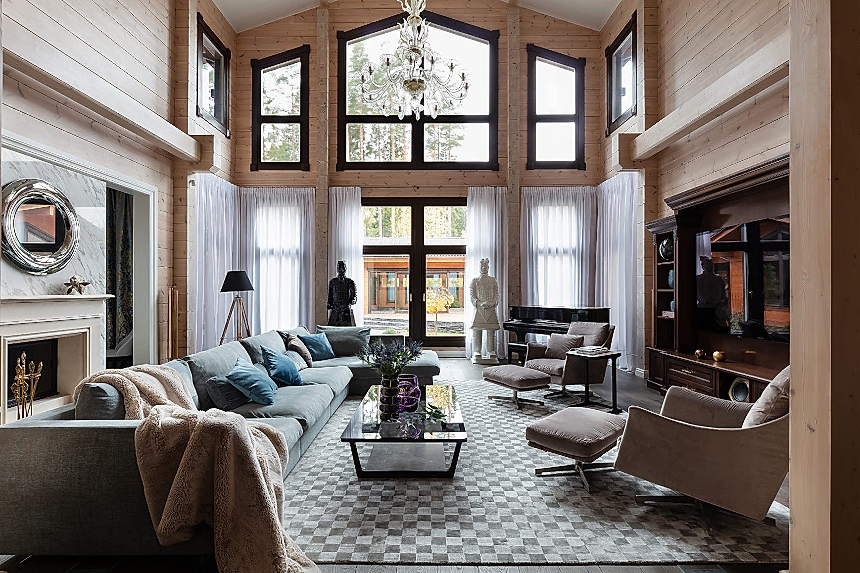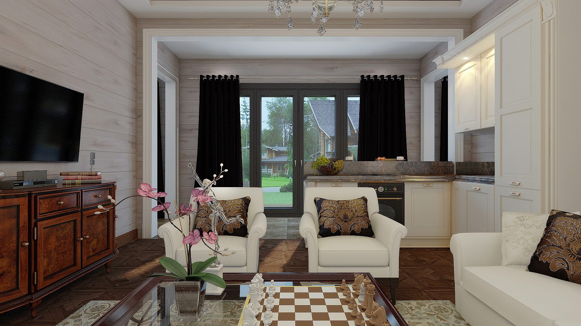 Основным пожелание заказчиков было создание, так называемого, родового гнезда. Дом был спроектирован с индивидуальным подходом для семьи из семи человек. первый этаж в основном предназначен для приема гостей, комфортного времяпрепровождения. Зона СПА, бассейн. Весь второй этаж - детская зона: спальни для мальчиков и девочек, а также сами хозяев дома.