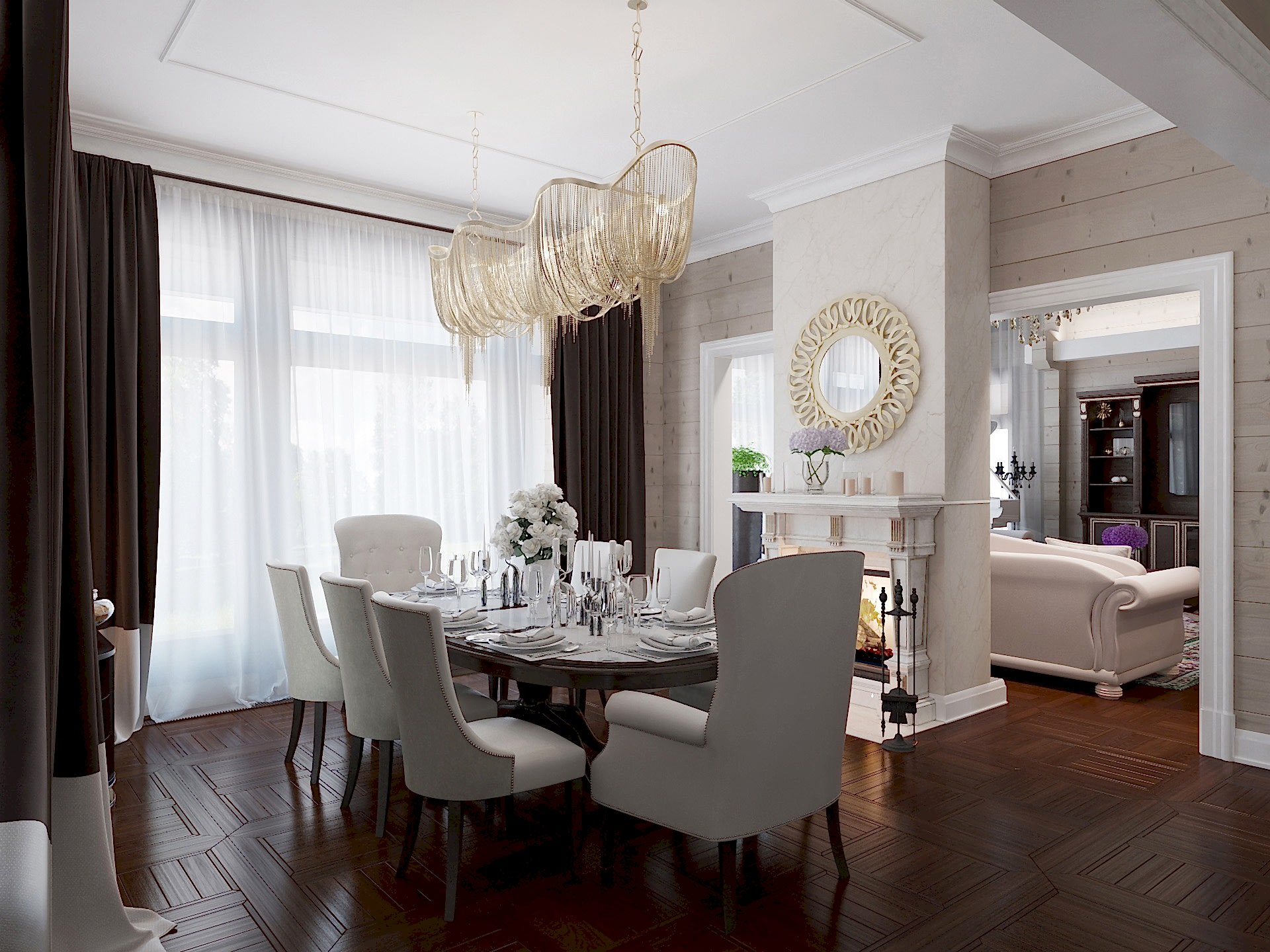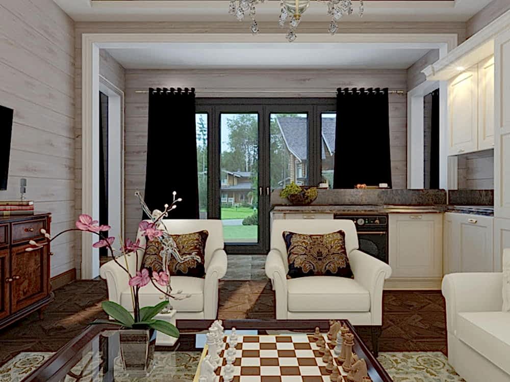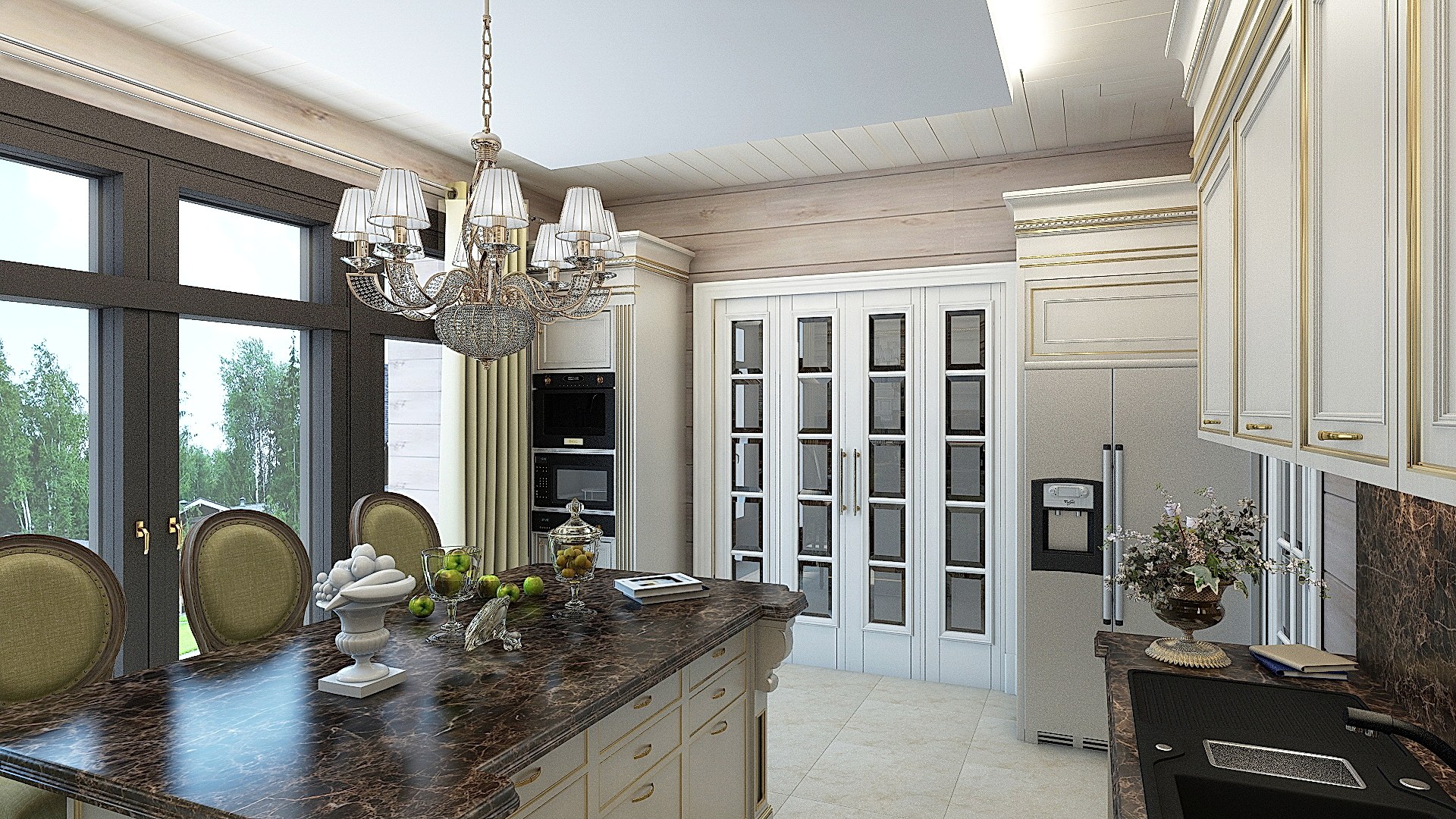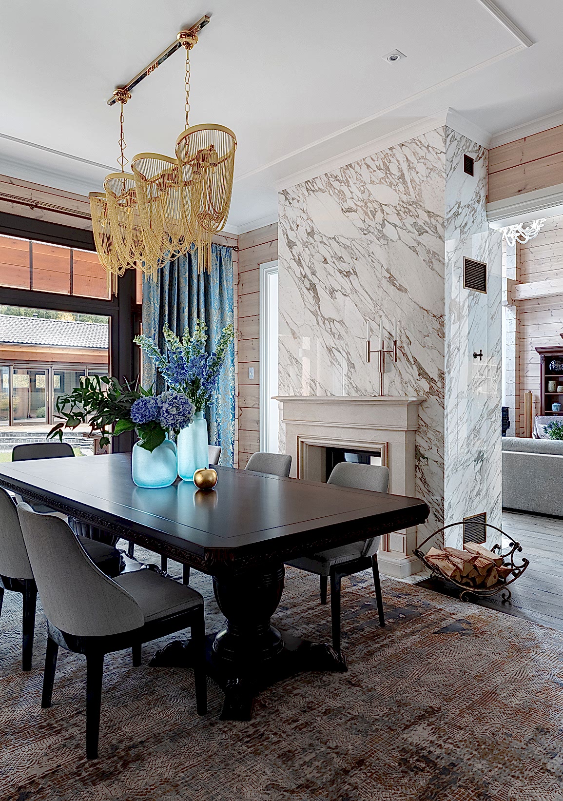 Основным пожелание заказчиков было создание, так называемого, родового гнезда. Дом был спроектирован с индивидуальным подходом для семьи из семи человек. первый этаж в основном предназначен для приема гостей, комфортного времяпрепровождения. Зона СПА, бассейн. Весь второй этаж - детская зона: спальни для мальчиков и девочек, а также сами хозяев дома.