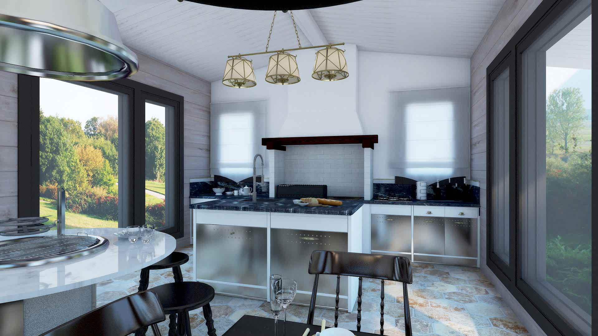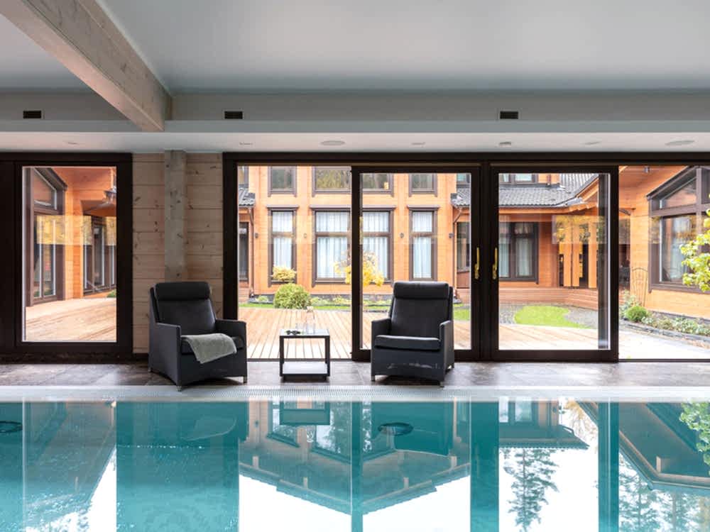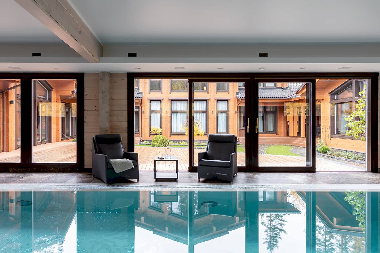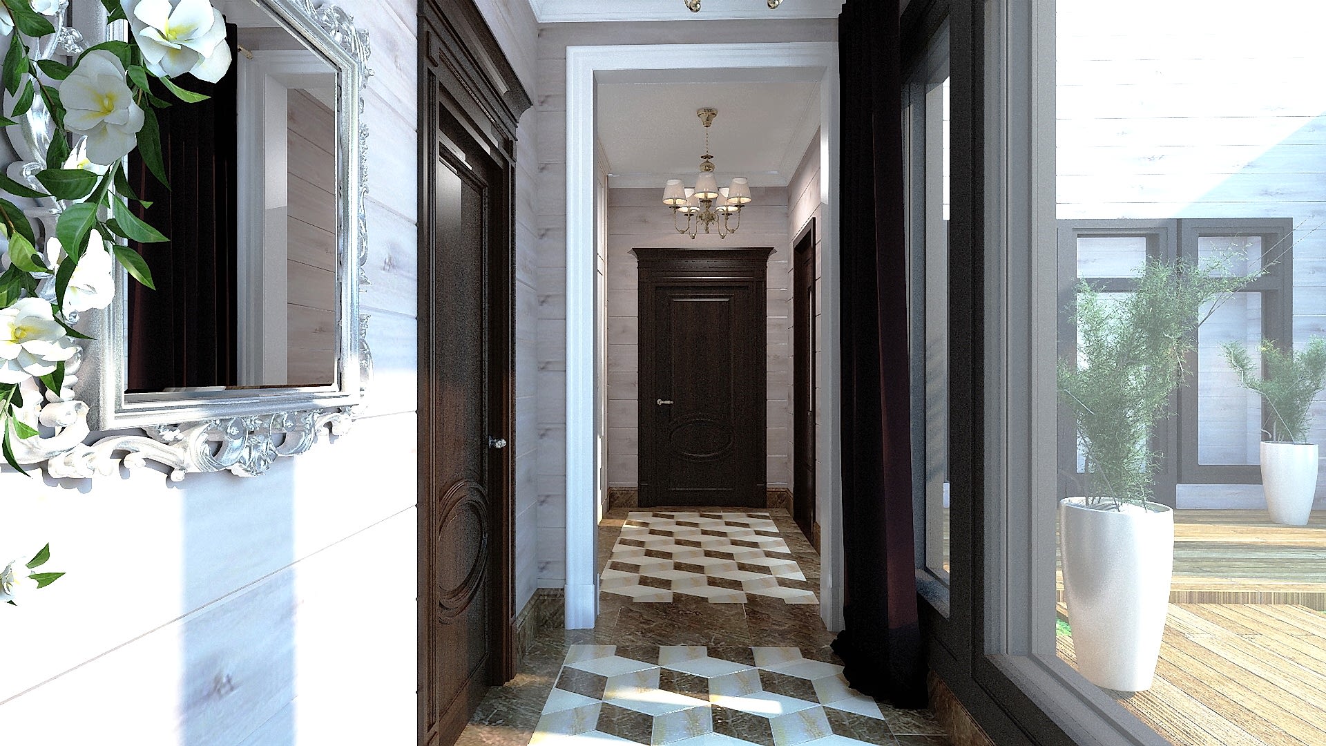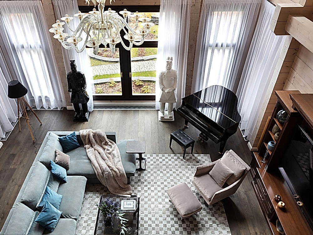 Основным пожелание заказчиков было создание, так называемого, родового гнезда. Дом был спроектирован с индивидуальным подходом для семьи из семи человек. первый этаж в основном предназначен для приема гостей, комфортного времяпрепровождения. Зона СПА, бассейн. Весь второй этаж - детская зона: спальни для мальчиков и девочек, а также сами хозяев дома.